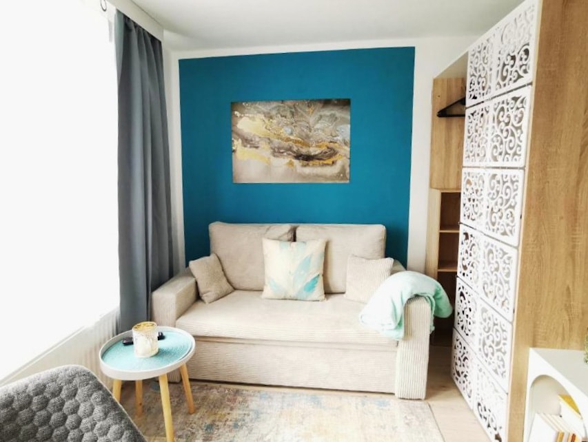 ಈ ವಿಶಿಷ್ಟ ಮನೆಯು ತನ್ನದೇ ಆದ ಶೈಲಿಯನ್ನು ಹೊಂದಿದೆ. ನವೀನ ಮತ್ತು ಕ್ರಿಯಾತ್ಮಕ ವಿನ್ಯಾಸವು ಎಲ್ಲಾ ಸೌಲಭ್ಯಗಳನ್ನು ಅನುಮತಿಸುತ್ತದೆ ಮತ್ತು ಕೇವಲ 18 ಚದರ ಮೀಟರ್ನಲ್ಲಿ ಗರಿಷ್ಠ ಆರಾಮವನ್ನು ನೀಡುತ್ತದೆ. ಸಂಪೂರ್ಣ ಸುಸಜ್ಜಿತ ಅಡುಗೆಮನೆ, ವೇಗದ ಇಂಟರ್ನೆಟ್, ಸ್ಮಾರ್ಟ್ ಟಿವಿ ವಿಶೇಷ ಪೀಠೋಪಕರಣಗಳನ್ನು ಪೂರ್ಣಗೊಳಿಸುತ್ತವೆ. ನೀವು ಮನೆಯ ಮುಂದೆ ಉಚಿತವಾಗಿ ಪಾರ್ಕ್ ಮಾಡಬಹುದು. ದಕ್ಷಿಣ ಮುಖದ ಕಿಟಕಿಗಳಿಂದ, ನಮ್ಮ ಗೆಸ್ಟ್ಗಳು ನಗರದ ವಿಶಿಷ್ಟ ನೋಟವನ್ನು ಹೊಂದಿದ್ದಾರೆ. ನಗರ ಕೇಂದ್ರವು ಕೆಲವು ನಿಮಿಷಗಳ ನಡಿಗೆ ದೂರದಲ್ಲಿದೆ. ಕುರುಡು ಮತ್ತು ಹಿರಿಯರಿಗಾಗಿ "ಬ್ಲಿಕ್ಪಂಕ್ಟ್" ಮನೆ ಹತ್ತಿರದಲ್ಲಿದೆ.
