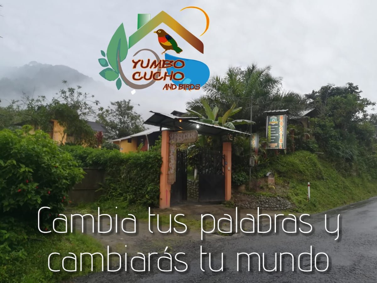 ನೀವು ಈ ಕ್ಯಾಬಿನ್ ಅನ್ನು ಇಷ್ಟಪಡುತ್ತೀರಿ, ಇದು ರಿಯೊ ಮಿಂಡೋ ಪಕ್ಕದಲ್ಲಿದೆ, ಇದು ಡಬಲ್ ಬೆಡ್ , ಸೋಫಾ ಬೆಡ್ , ವರ್ಕ್ ಟೇಬಲ್ ಮತ್ತು ಹ್ಯಾಮಾಕ್ ಅನ್ನು ಹೊಂದಿದೆ. ಇದು ಹಾಳೆಗಳು,ಕಂಬಳಿಗಳು, ಟವೆಲ್ಗಳು ಮತ್ತು ನೀರನ್ನು ಹೊಂದಿದೆ. ನಮ್ಮ ಚೋಜನ್ನಲ್ಲಿ ಬ್ರೇಕ್ಫಾಸ್ಟ್ ಅನ್ನು ಸ್ವೀಕರಿಸಲಾಗುತ್ತದೆ, ಅಲ್ಲಿ ಸಣ್ಣ ಕೆಫೆ ಮತ್ತು ಕರಕುಶಲ ಅಂಗಡಿ ಇದೆ ನಾವು ಹಳ್ಳಿಗೆ ತುಂಬಾ ಹತ್ತಿರದಲ್ಲಿದ್ದೇವೆ ಮತ್ತು ಈ ಪ್ರದೇಶದಲ್ಲಿನ ಅನೇಕ ಆಕರ್ಷಣೆಗಳು ( ಚಿಟ್ಟೆ, ಜಲಪಾತಗಳು, ಕೇಬಲ್ ಕಾರ್, ಇತ್ಯಾದಿ) ನೀವು ನಡೆಯಬಹುದು. ನಮ್ಮಲ್ಲಿ ವೈ-ಫೈ ಇದೆ. ನಾವು ಸ್ಥಳೀಯ ಮಾರ್ಗದರ್ಶಿ ಸೇವೆ ಮತ್ತು ಸಾರಿಗೆಯನ್ನು ನೀಡುತ್ತೇವೆ