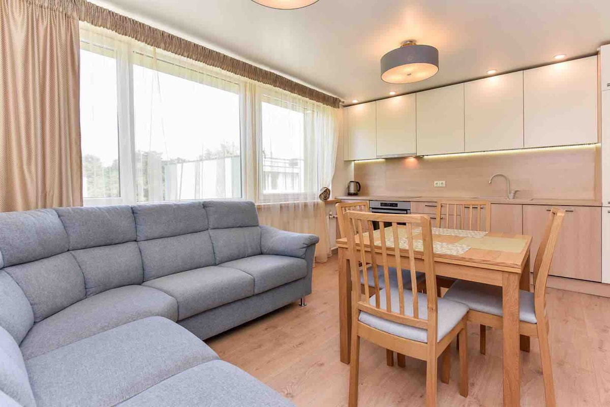 ಡ್ರಸ್ಕಿನಿಂಕೈನಲ್ಲಿ ಹೊಸದಾಗಿ ವಿನ್ಯಾಸಗೊಳಿಸಲಾದ, ಸ್ವಚ್ಛ ಮತ್ತು ಆರಾಮದಾಯಕ ಅಪಾರ್ಟ್ಮೆಂಟ್. ಇದು ಲಿವಿಂಗ್ ರೂಮ್ನಲ್ಲಿ 1 ಬೆಡ್ರೂಮ್ ಮತ್ತು ವಿಶಾಲವಾದ ಸೋಫಾ ಹಾಸಿಗೆ, ಫ್ಲಾಟ್-ಸ್ಕ್ರೀನ್ ಟಿವಿ, ಸುಸಜ್ಜಿತ ಅಡುಗೆಮನೆ, ವಿಶಾಲವಾದ ಬಾತ್ರೂಮ್ ಅನ್ನು ಒಳಗೊಂಡಿದೆ. ಇದನ್ನು ಡ್ರಸ್ಕಿನಿಂಕೈನ ಕೇಂದ್ರ ಆದರೆ ಸ್ತಬ್ಧ ಪ್ರದೇಶದಲ್ಲಿ ಇರಿಸಲಾಗಿದೆ. ಉಚಿತ ಮತ್ತು ವೇಗದ ವೈ-ಫೈ ನೀಡಲಾಗುತ್ತದೆ. ನಾವು ಲಿಥುವೇನಿಯನ್, ಇಂಗ್ಲಿಷ್ ಮತ್ತು ರಷ್ಯನ್ ಮಾತನಾಡುತ್ತೇವೆ.