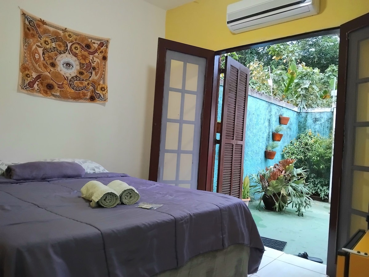 ಮೋಡಿ, ಆರಾಮ ಮತ್ತು ಗೌಪ್ಯತೆಯನ್ನು ಬಯಸುವವರಿಗೆ ಮರದ ಬಂಗಲೆ ಸೂಕ್ತವಾಗಿದೆ. ಹಳ್ಳಿಗಾಡಿನ ಮತ್ತು ಆರಾಮದಾಯಕ ಶೈಲಿಯೊಂದಿಗೆ, ಇದು ಕಿಂಗ್-ಗಾತ್ರದ ಡಬಲ್ ಬೆಡ್, ಪ್ರೈವೇಟ್ ಬಾತ್ರೂಮ್, ಸುತ್ತಿಗೆ ಹೊಂದಿರುವ ಬಾಲ್ಕನಿ ಮತ್ತು ಪ್ರಕೃತಿಯಿಂದ ಆವೃತವಾದ ಶಾಂತಿಯುತ ವಾತಾವರಣವನ್ನು ಹೊಂದಿದೆ. ಟಾಂಬೊ ಬೀಚ್ನಿಂದ ಕೆಲವು ಮೆಟ್ಟಿಲುಗಳು, ಸರಳತೆ ಮತ್ತು ಯೋಗಕ್ಷೇಮದೊಂದಿಗೆ ವಿಶ್ರಾಂತಿ ಪಡೆಯಲು ಬಯಸುವ ದಂಪತಿಗಳು ಅಥವಾ ಪ್ರಯಾಣಿಕರಿಗೆ ಇದು ಸೂಕ್ತವಾಗಿದೆ. ಗುವಾರುಜಾದಲ್ಲಿ ಒಂದು ವಿಶಿಷ್ಟ ಅನುಭವ!
