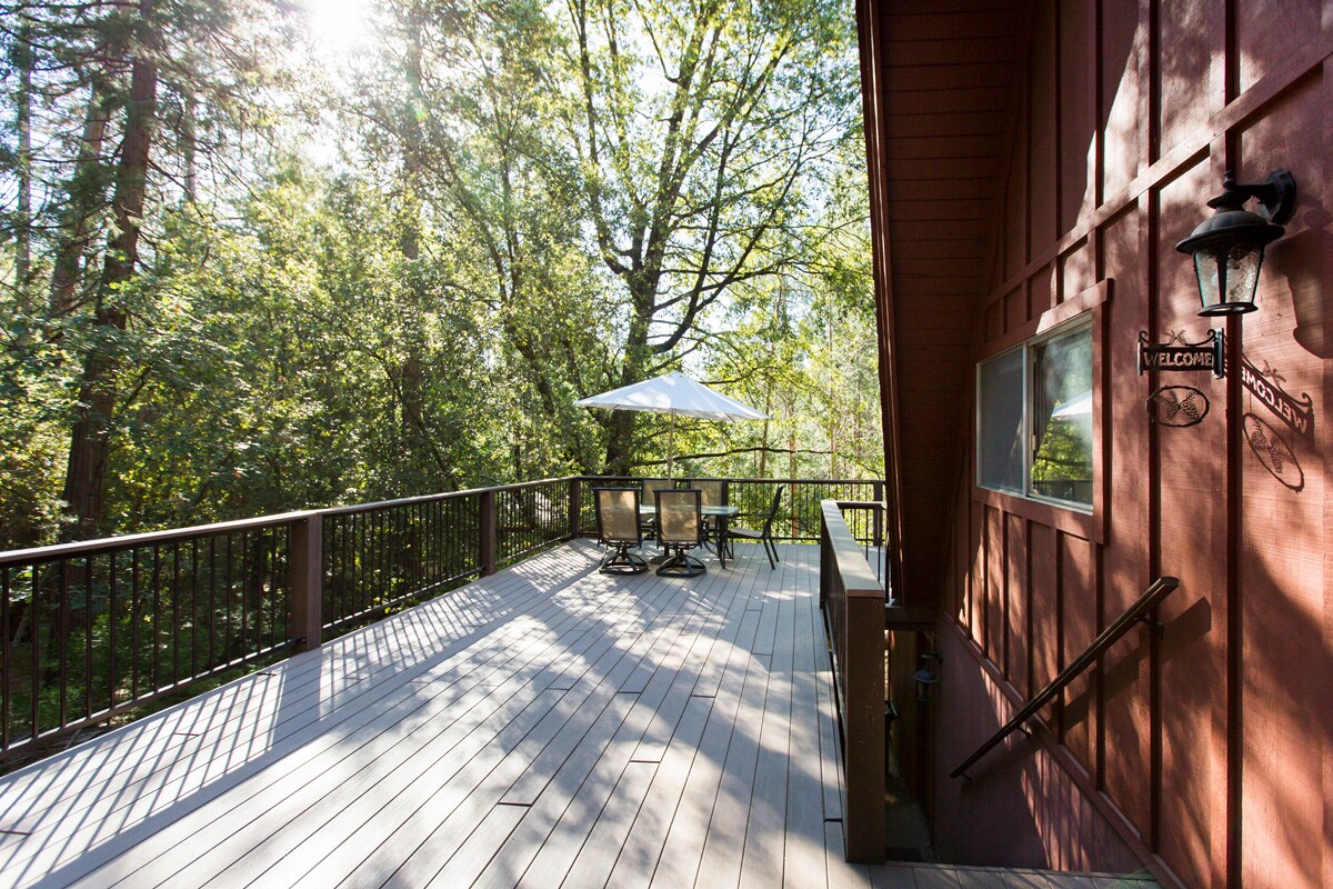 ನಮ್ಮ ಕ್ಯಾಬಿನ್ ಪರಿಪೂರ್ಣ ಪರ್ವತವಾಗಿದೆ. ನೀವು ಹತ್ತಿರದ ಟ್ವೈನ್ ಹಾರ್ಟೆ ಲೇಕ್, ಪಿನೆಕ್ರೆಸ್ಟ್, ಯೊಸೆಮೈಟ್ಗೆ ಭೇಟಿ ನೀಡುತ್ತಿರಲಿ ಅಥವಾ ವಿಶ್ರಾಂತಿ ಪಡೆಯಲು ಮತ್ತು ಗಾಜಿನ ವೈನ್ನೊಂದಿಗೆ ಹಿಂಭಾಗದ ಡೆಕ್ನಲ್ಲಿ ಕುಳಿತು ಆನಂದಿಸಲು ಬಯಸುತ್ತಿರಲಿ; ಪಟ್ಟಣಕ್ಕೆ 4 ನಿಮಿಷಗಳ ನಡಿಗೆಯೊಂದಿಗೆ ನಮ್ಮ ಮನೆಯನ್ನು ನೀವು ತುಂಬಾ ಆರಾಮದಾಯಕ ಮತ್ತು ಸ್ತಬ್ಧ ವಾಸ್ತವ್ಯವನ್ನು ಕಾಣುತ್ತೀರಿ! ಚಳಿಗಾಲದಲ್ಲಿ ಮರದ ಬೆಂಕಿ ಸ್ಥಳವನ್ನು ಆನಂದಿಸಿ ಮತ್ತು ದೊಡ್ಡ ಸುಂದರವಾದ ಮುಂಭಾಗದ ಕಿಟಕಿಗಳು ಮತ್ತು ಎತ್ತರದ ತೆರೆದ ಕಿರಣದ ಸೀಲಿಂಗ್ನಲ್ಲಿ ಹಿಮ ಬೀಳುವುದನ್ನು ವೀಕ್ಷಿಸಿ. ಉರುವಲು ಸೇರಿಸಲಾಗಿಲ್ಲ. ಗದ್ದಲದಿಂದ ದೂರವಿರಲು ಶಾಂತವಾದ ನೆರೆಹೊರೆಯಲ್ಲಿದೆ