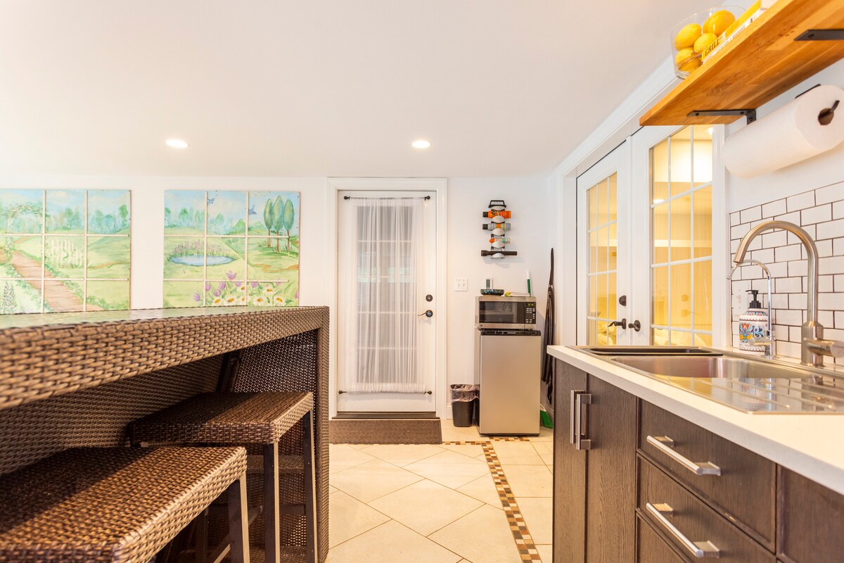 ನಮ್ಮ ಮನೆಯ ನೆಲಮಹಡಿಯ ಸೂಟ್/ಅಪಾರ್ಟ್ಮೆಂಟ್ನಲ್ಲಿ ಸಂಪೂರ್ಣ ಗೌಪ್ಯತೆ ಮತ್ತು 900+ ಚದರ ಅಡಿಗಳಷ್ಟು ವಾಸಿಸುವ ಸ್ಥಳವನ್ನು ಆನಂದಿಸಿ. ತನ್ನದೇ ಆದ ಖಾಸಗಿ ಪ್ರವೇಶ ಮತ್ತು ವೈಯಕ್ತಿಕ ಗ್ಯಾರೇಜ್ನೊಂದಿಗೆ ಪೂರ್ಣಗೊಳಿಸಿ - ನಮ್ಮ ನೆಲಮಹಡಿಯ ಸೂಟ್ ನಿಮ್ಮ ಸ್ವಂತ ಖಾಸಗಿ ಡೊಮೇನ್ ಆಗಿದೆ. ಒಂದು ಕಿಂಗ್ ಬೆಡ್, ಒಂದು ಕ್ವೀನ್ ಬೆಡ್ ಮತ್ತು ಆರಾಮದಾಯಕ ವಿಭಾಗೀಯ ಮಂಚವಿದೆ. ಒಳಗೆ ಸರಳ ಅಡುಗೆಗಾಗಿ ಸಣ್ಣ ಅಡುಗೆಮನೆ ಮತ್ತು ದೊಡ್ಡ ಅಡುಗೆಗಾಗಿ ಆಲ್ಫ್ರೆಸ್ಕೊ BBQ ಅನ್ನು ಆನಂದಿಸಿ. ಒಳಗೆ ಮತ್ತು ಹೊರಗೆ ಸಾಕಷ್ಟು ವಾಸಿಸುವ ಸ್ಥಳವಿದೆ! ಹೊಸ ವಾಷರ್/ಡ್ರೈಯರ್ ಯುನಿಟ್ ಬಳಸಿದ ಎಲ್ಲಾ ಪೂಲ್ ಟವೆಲ್ಗಳನ್ನು ನೋಡಿಕೊಳ್ಳುತ್ತದೆ!