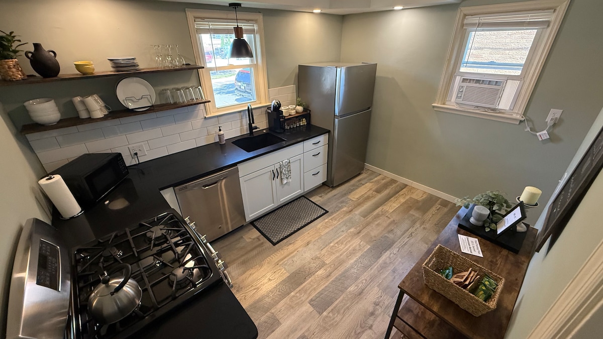 ಈ ಸುಂದರವಾದ ಮತ್ತು ಹಗುರವಾದ ತುಂಬಿದ ಸ್ಥಳವು 12 ಅಡಿ ಛಾವಣಿಗಳು ಮತ್ತು ಒಡ್ಡಿದ ಇಟ್ಟಿಗೆಗಳನ್ನು ಹೊಂದಿದೆ. ತ್ವರಿತ ಊಟವನ್ನು ಬೇಯಿಸಲು ಸುಸಜ್ಜಿತ ಅಡುಗೆಮನೆಯನ್ನು ಆನಂದಿಸಿ ಅಥವಾ ನಿಮ್ಮ ಮುಂಭಾಗದ ಬಾಗಿಲಿನಿಂದ ಹೊರನಡೆಯಿರಿ ಮತ್ತು ನಿಮ್ಮ ಬೆರಳ ತುದಿಯಲ್ಲಿ ಹಲವಾರು ಸ್ಥಳೀಯ ರೆಸ್ಟೋರೆಂಟ್ಗಳನ್ನು ಆನಂದಿಸಿ! ನಿಮ್ಮ ಮನರಂಜನೆಗಾಗಿ ಸ್ಮಾರ್ಟ್ ಟಿವಿ ಕಾಂಪ್ಲಿಮೆಂಟರಿ ಪ್ರೈಮ್ ವೀಡಿಯೊ ಖಾತೆಯನ್ನು ಹೊಂದಿದೆ! ಮಲಗುವ ಕೋಣೆ ಮೇಜಿನೊಂದಿಗೆ ಸಣ್ಣ ಕಚೇರಿ ಮೂಲೆ ಹೊಂದಿರುವ ಆರಾಮದಾಯಕ ರಾಜ ಗಾತ್ರದ ಹಾಸಿಗೆಯನ್ನು ಹೊಂದಿದೆ! ನಿಮ್ಮ ಲಿವಿಂಗ್ರೂಮ್ ಕಿಟಕಿಯಿಂದ ಡೌನ್ಟೌನ್ ಡಿಪೋ ಟೌನ್ ಮತ್ತು ರೈಲಿನ ವೀಕ್ಷಣೆಗಳನ್ನು ಆನಂದಿಸಿ!