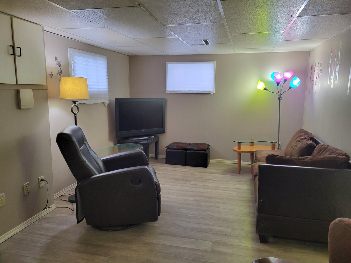 ಆಕರ್ಷಕ ಪ್ರೈವೇಟ್ ಬೆಡ್ರೂಮ್ #5 (ಬೇಸ್ಮೆಂಟ್)