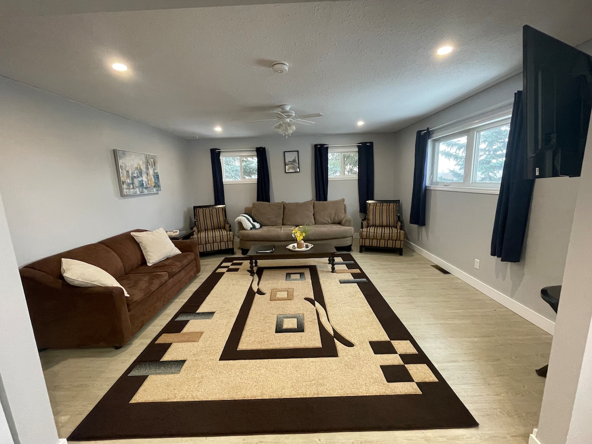 ನೀವು ಮುಖ್ಯ ಮಹಡಿಗೆ ಪ್ರವೇಶವನ್ನು ಹೊಂದಿರುತ್ತೀರಿ. ಎರಡು ಬೆಡ್ರೂಮ್ಗಳು, ಒಂದು ಕಿಂಗ್ ಬೆಡ್ ಮತ್ತು ಕ್ವೀನ್ ಬೆಡ್ ಹೊಂದಿರುವ ಒಂದು ಬೆಡ್ರೂಮ್ಗಳು 4 ಜನರಿಗೆ ಅವಕಾಶ ಕಲ್ಪಿಸಬಹುದು. ಸಂಪೂರ್ಣ ಸುಸಜ್ಜಿತ ಅಡುಗೆಮನೆ, ನಿಮ್ಮ ಆಹಾರವನ್ನು ತಂದುಕೊಡಿ. BBQ ಗೆ ಪ್ರವೇಶ. ಎಲೆಕ್ಟ್ರಿಕ್ ಫೈರ್ಪ್ಲೇಸ್ ಹೊಂದಿರುವ ಡೈನಿಂಗ್ ರೂಮ್ ಮತ್ತು ಲಿವಿಂಗ್ ರೂಮ್. ಕಾಫಿ ಬಾರ್ ರಾತ್ರಿಯಲ್ಲಿ ಜೆಟ್ ಟಬ್ನಲ್ಲಿ ವಿಶ್ರಾಂತಿ ಪಡೆಯುವ ಮೂಲಕ ದಿನದ ಒತ್ತಡವನ್ನು ದೂರವಿಡಿ! ರಾತ್ರಿಯಲ್ಲಿ ಮುಚ್ಚಿದ ಗೆಜೆಬೊ ಅಡಿಯಲ್ಲಿ ಫೈರ್ಟೇಬಲ್ ಮತ್ತು ಡೆಕ್ ಅನ್ನು ಆನಂದಿಸಿ. 2 ವಾಹನಗಳಿಗೆ ಆಫ್ಸ್ಟ್ರೀಟ್ ಪಾರ್ಕಿಂಗ್ ಲಭ್ಯವಿದೆ. ಮಾಲೀಕರು ನೆಲಮಾಳಿಗೆಯನ್ನು ಪ್ರತ್ಯೇಕ ಪ್ರವೇಶದೊಂದಿಗೆ ಹೋಮ್ ಆಫೀಸ್ ಆಗಿ ಬಳಸುತ್ತಾರೆ.