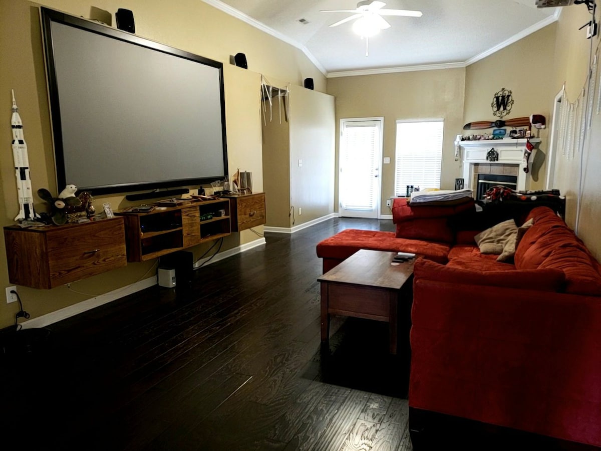 ವಿಮಾನ ನಿಲ್ದಾಣ, ಕಸದ ಪಾಂಡಾ ಕ್ರೀಡಾಂಗಣ ಮತ್ತು ಗೇಟ್ 7 ರೆಡ್ಸ್ಟೋನ್ ಆರ್ಸೆನಲ್ಗೆ ಹತ್ತಿರದಲ್ಲಿರುವ ದೊಡ್ಡ ಕುಟುಂಬದ ಮನೆ. ಈ ಕೈಗೆಟುಕುವ ಮತ್ತು ವಿಶಾಲವಾದ ಸ್ಥಳವು 9 ರವರೆಗೆ ನಿದ್ರಿಸುತ್ತದೆ! ಬೆಡ್ರೂಮ್ಗಳು ಕಿಂಗ್ ಸೈಜ್ ಬೆಡ್ ಹೊಂದಿರುವ ಮಾಸ್ಟರ್ ಬೆಡ್ರೂಮ್ ಸೂಟ್ ಅನ್ನು ಒಳಗೊಂಡಿವೆ, ಬೆಡ್ರೂಮ್ 2 ಅವಳಿ ಪುಲ್ ಔಟ್ನೊಂದಿಗೆ ಪೂರ್ಣ ಗಾತ್ರದ ಟ್ರಂಡಲ್ ಅನ್ನು ಹೊಂದಿದೆ, ಬೆಡ್ರೂಮ್ 3 2 ಅವಳಿ ಗಾತ್ರದ ಹಾಸಿಗೆಗಳನ್ನು ಹೊಂದಿದೆ. ಲಿವಿಂಗ್ ರೂಮ್ ಮಂಚವು ಎಳೆಯುವ ರಾಣಿ ಹಾಸಿಗೆಯನ್ನು ಹೊಂದಿದೆ. ಹೊರಗೆ ನೀವು ಬ್ಯಾಸ್ಕೆಟ್ಬಾಲ್ ಕೋರ್ಟ್ ಹೊಂದಿರುವ ದೊಡ್ಡ ಕಾಂಕ್ರೀಟ್ ಒಳಾಂಗಣವನ್ನು ಕಾಣುತ್ತೀರಿ. ಹಿತ್ತಲಿನಲ್ಲಿ ಸುಂದರವಾದ ಅಲಬಾಮಾ ದಿನವನ್ನು ಆನಂದಿಸಲು ಮಕ್ಕಳಿಗೆ ಸಾಕಷ್ಟು ಸ್ಥಳಾವಕಾಶವಿದೆ.