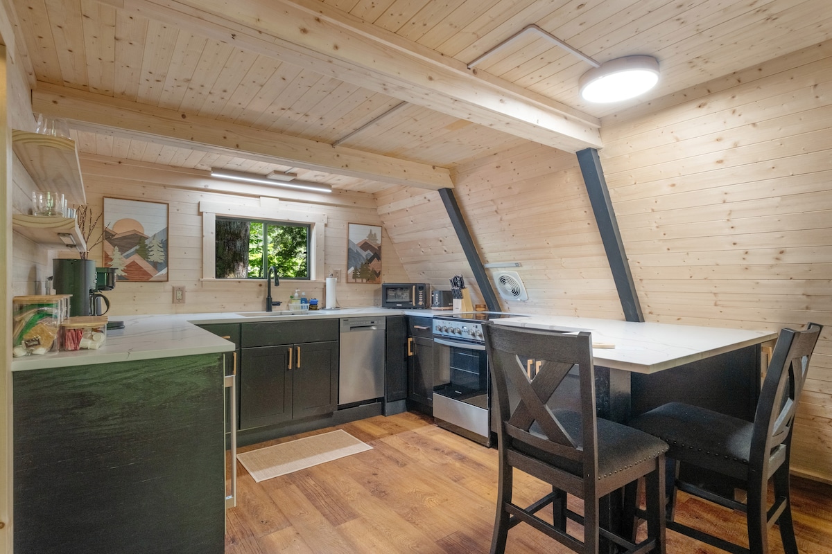 ಎ-ಫ್ರೇಮ್ | ಹಾಟ್ ಟಬ್ | ಫೈರ್ಪಿಟ್ | EV | ಮೌಂಟ್ ರೈನಿಯರ್