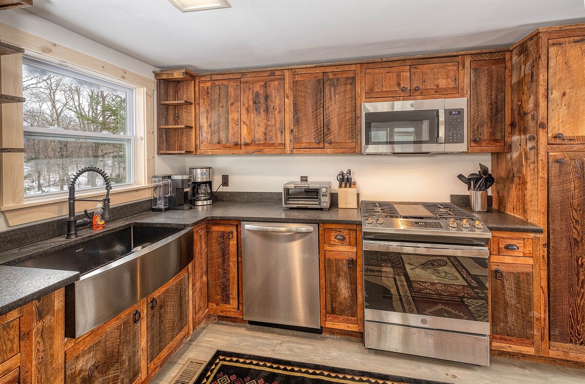 ಆರಾಮದಾಯಕ, ಹಳ್ಳಿಗಾಡಿನ, ಸ್ತಬ್ಧ, ಮರದ ಸೆಟ್ಟಿಂಗ್. ಖಾಸಗಿ ಬಬ್ಲಿಂಗ್ ಬ್ರೂಕ್, ಗ್ಯಾಸ್ ಫೈರ್ಪ್ಲೇಸ್, ಹಾಟ್ ಟಬ್, ಮೆಮೊರಿ ಫೋಮ್ ಮೆಟ್ರೆಸ್, ಆರಾಮದಾಯಕ ಕಂಫರ್ಟರ್, ಪೂರ್ಣ ಅಡುಗೆಮನೆ, ತಾಜಾ ಲಿನೆನ್ಗಳು, ಸ್ಮಾರ್ಟ್ ಟಿವಿ, ವೈಫೈ, ಕ್ಲೀನ್ ಬಾತ್, ಇದ್ದಿಲು ಗ್ರಿಲ್, ಪಿಕ್ನಿಕ್ ಟೇಬಲ್, ಫೈರ್ ಪಿಟ್. ಪ್ರಶಸ್ತಿ ವಿಜೇತ ರೆಸ್ಟೋರೆಂಟ್ಗಳು, ಸ್ಕೀಯಿಂಗ್, ಜಾರುಬಂಡಿ ಸವಾರಿಗಳು ಮತ್ತು ಎಲ್ಲಾ ಆಕರ್ಷಣೆಗಳಿಗೆ ನಿಮಿಷಗಳು. ಬ್ಲ್ಯಾಕ್ MT ಗೆ 1/2 ಮೈಲಿ, ಕುದುರೆ ಸವಾರಿ/ಕುದುರೆ ಸವಾರಿಗಳು, ಸಲಿಕೆ ಹ್ಯಾಂಡಲ್ ಪಬ್, ಫಾರ್ಮ್ ಸ್ಟ್ಯಾಂಡ್ ಇತ್ಯಾದಿ. ಹೈಕಿಂಗ್, ಸ್ನೋ ಶೂ (2 ಒದಗಿಸಲಾಗಿದೆ), ಬ್ಯಾಕ್ಕಂಟ್ರಿ ಸ್ಕೀ, ನಿಮ್ಮ ಮುಂಭಾಗದ ಬಾಗಿಲಿನಿಂದ ಸ್ಲೆಡ್ ಮಾಡಲಾಗಿದೆ. 2 ಅವಳಿ ಹಾಸಿಗೆಗಳು ಮತ್ತು ಫ್ಯೂಟನ್ ಅನ್ನು ಮಡಚಿಕೊಳ್ಳಿ.