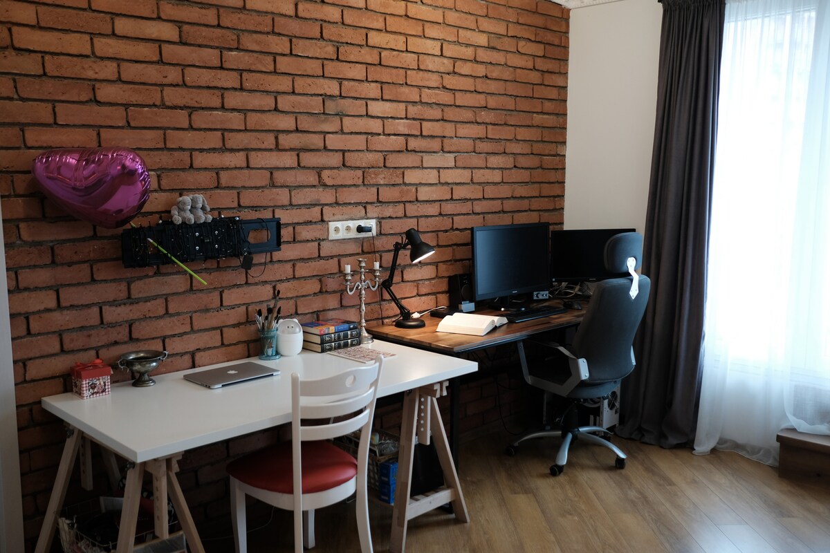 "ಟೆರೇಸ್ ಗ್ಯಾಲರಿಗೆ" ಸುಸ್ವಾಗತ, ಅಲ್ಲಿ ಪ್ರತಿ ವಿವರವನ್ನು ನಿಮ್ಮ ಆರಾಮ ಮತ್ತು ಸಂತೋಷಕ್ಕೆ ಮೀಸಲಿಡಲಾಗಿದೆ. ಈ ಸೊಗಸಾದ ಮನೆ ಟಿಬಿಲಿಸಿಯ ಹೃದಯಭಾಗದಲ್ಲಿದೆ, ಗೌಪ್ಯತೆ, ಆರಾಮ ಮತ್ತು ಅನನ್ಯ ಅನುಭವವನ್ನು ನೀಡುತ್ತದೆ. ಗೆಸ್ಟ್ಗಳನ್ನು ತಮ್ಮ ರುಚಿಗೆ ತಕ್ಕಂತೆ ಆಯ್ಕೆ ಮಾಡಿದ ಜಾರ್ಜಿಯನ್ ವೈನ್ ಬಾಟಲಿಯೊಂದಿಗೆ ಸ್ವಾಗತಿಸಲಾಗುತ್ತದೆ, ತಾಜಾ ಕಾಲೋಚಿತ ಹಣ್ಣು, ಉತ್ತಮ ಚಾಕೊಲೇಟ್, ಕಾಫಿ, ಚಹಾ ಮತ್ತು ತಂಪು ಪಾನೀಯಗಳು. ಅಪಾರ್ಟ್ಮೆಂಟ್ ಡಿಸೈನರ್ ಒಳಾಂಗಣ, ನಗರದ ವೀಕ್ಷಣೆಗಳೊಂದಿಗೆ ವಿಹಂಗಮ ಟೆರೇಸ್, ಪ್ರೀಮಿಯಂ ಪೀಠೋಪಕರಣಗಳು ಮತ್ತು ಸ್ವತಂತ್ರ ಚೆಕ್-ಇನ್ ಮತ್ತು ಚೆಕ್-ಔಟ್ಗಾಗಿ ಸ್ಮಾರ್ಟ್ ಲಾಕ್ ಪ್ರವೇಶವನ್ನು ಹೊಂದಿದೆ.