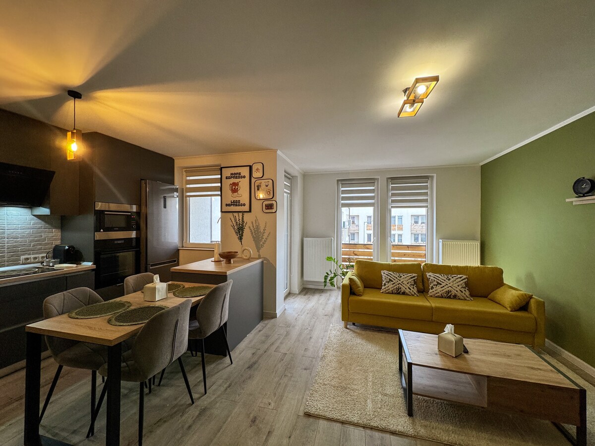 ದೊಡ್ಡ ಮಲಗುವ ಕೋಣೆ (ಬೆಡ್ -180x200) ಹೊಂದಿರುವ ವಿಶಾಲವಾದ ಅಪಾರ್ಟ್ಮೆಂಟ್ ಮತ್ತು ಹೊಸ ವಸತಿ ಪ್ರದೇಶದಲ್ಲಿ ನೆಲೆಗೊಂಡಿರುವ ಉದಾರವಾದ ತೆರೆದ ಸ್ಥಳದ ಲಿವಿಂಗ್ ರೂಮ್, ಖಾಸಗಿ ಪಾರ್ಕಿಂಗ್, ನಗರ ಶಬ್ದದಿಂದ ಸಂಪೂರ್ಣವಾಗಿ ರಕ್ಷಿಸಲ್ಪಟ್ಟಿದೆ ಮತ್ತು ಅದೇ ಸಮಯದಲ್ಲಿ ನಗರ ಕೇಂದ್ರದಿಂದ ಕೇವಲ 5 ನಿಮಿಷಗಳ ಡ್ರೈವ್ ದೂರದಲ್ಲಿದೆ. ಮಕ್ಕಳು, ದಂಪತಿಗಳು ಅಥವಾ ವೈಯಕ್ತಿಕ ಪ್ರಯಾಣಿಕರನ್ನು ಹೊಂದಿರುವ ಕುಟುಂಬಗಳಿಗೆ ಸೂಕ್ತ ಸ್ಥಳವಾಗಿದೆ, ಅವರು ರಿಮೋಟ್ ಕೆಲಸಕ್ಕಾಗಿ ಮೀಸಲಾದ ಸ್ಥಳವನ್ನು ಸಹ ಆನಂದಿಸಬಹುದು.