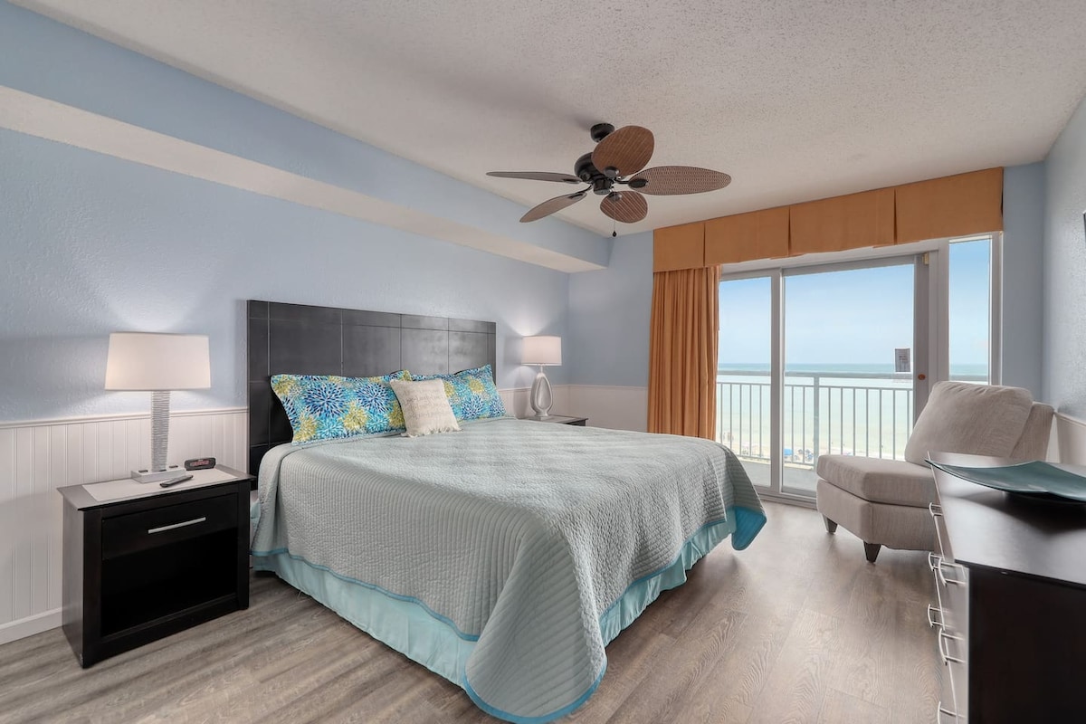 ಈ ಸೊಗಸಾದ ಮತ್ತು ಸಂಪೂರ್ಣವಾಗಿ ನವೀಕರಿಸಿದ ಸಾಗರ ವೀಕ್ಷಣೆ 2 ಮಲಗುವ ಕೋಣೆ 2 ಪೂರ್ಣ ಸ್ನಾನದ ಕಾಂಡೋದಲ್ಲಿ ಇಡೀ ಕುಟುಂಬದೊಂದಿಗೆ ಸೂರ್ಯನ ಬೆಳಕಿನಲ್ಲಿ ಮೋಜು ಮಾಡಿ. ಈ ಆಭರಣವು ಪ್ರತಿ ಮೂಲೆಯಲ್ಲಿ ವಿವರಗಳಿಗೆ ಗಮನ ಕೊಟ್ಟು ಸಂಪೂರ್ಣವಾಗಿ ಬೆರಗುಗೊಳಿಸುತ್ತದೆ. ಶವರ್ನಲ್ಲಿ ದೊಡ್ಡ ನಡಿಗೆ ಮತ್ತು ಹೆಚ್ಚುವರಿ ಸ್ನಾನದ ಸ್ಥಳದೊಂದಿಗೆ ಮಾಸ್ಟರ್ ಸೂಟ್ ಗಾತ್ರದಲ್ಲಿದೆ. ಎರಡನೇ ಬೆಡ್ರೂಮ್ನಲ್ಲಿ 2 ಕ್ವೀನ್ ಬೆಡ್ಗಳು ಮತ್ತು ಟಬ್/ಶವರ್ ಕಾಂಬೋ ಹೊಂದಿರುವ ಬೇರ್ಪಡಿಸಿದ ಪೂರ್ಣ ಬಾತ್ರೂಮ್ ಮತ್ತು ವಾಷರ್/ಡ್ರೈಯರ್ ಹೊಂದಿರುವ ಪೂರ್ಣ ಲಾಂಡ್ರಿ ಇದೆ. ಈ ಆಭರಣದಲ್ಲಿ ರಜಾದಿನವನ್ನು ಆನಂದಿಸಿ ಮತ್ತು ವಾರ್ಷಿಕವಾಗಿ ಹಿಂತಿರುಗಲು ಎದುರುನೋಡಬಹುದು