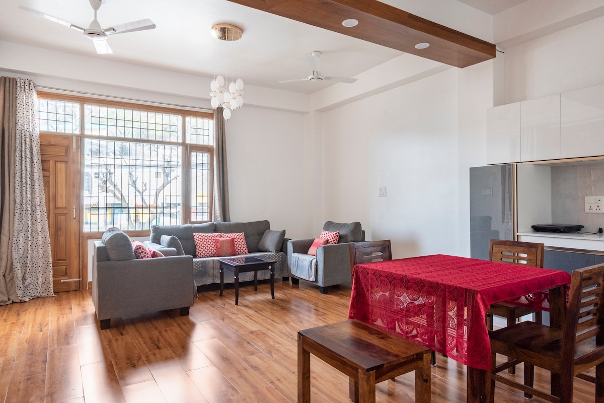 ನಮ್ಮ ಆಕರ್ಷಕ 1BHK ಅಪಾರ್ಟ್ಮೆಂಟ್ಗೆ ಸುಸ್ವಾಗತ – ಶಾಂತಿಯ ಹೃದಯಭಾಗದಲ್ಲಿರುವ ಗುಪ್ತ ರತ್ನ. ನಾನು ನಿಮಗಾಗಿ ಚಿತ್ರವನ್ನು ಚಿತ್ರಿಸೋಣ: ಸೂರ್ಯನ ಮೃದುವಾದ ಕಿರಣಗಳಿಗೆ ಎಚ್ಚರಗೊಳ್ಳುವುದು, ಬಾಲ್ಕನಿ ಸ್ವಿಂಗ್ನಲ್ಲಿ ನಿಮ್ಮ ಬೆಳಿಗ್ಗೆ ಕಾಫಿಯನ್ನು ಕುಡಿಯುವುದು ಮತ್ತು ಮೋಡಿಮಾಡುವ ಕಣಿವೆ, ಭವ್ಯವಾದ ಪರ್ವತಗಳು ಮತ್ತು ಮೋಡಿಮಾಡುವ ರಾತ್ರಿ ಆಕಾಶವನ್ನು ನಕ್ಷತ್ರಗಳ ನಕ್ಷತ್ರದಿಂದ ಅಲಂಕರಿಸುವುದನ್ನು ಕಲ್ಪಿಸಿಕೊಳ್ಳಿ. ಹೌದು, ಕನಸುಗಳು ಜೀವಂತವಾಗಿರುವ ಸ್ಥಳ ಇದು. ಎಲೆಗಳಿಲ್ಲವೇ? ಚಿಂತಿಸಬೇಡಿ! ಲ್ಯಾಪ್ಟಾಪ್ ಸೆಟಪ್ ಮಾಡಿ, ಹೈ-ಸ್ಪೀಡ್ ವೈ-ಫೈ ಆನಂದಿಸಿ ಮತ್ತು ರಮಣೀಯ ಸುತ್ತಮುತ್ತಲಿನ ಪ್ರದೇಶಗಳಲ್ಲಿ ಉತ್ಪಾದಕತೆಯು ಹರಿಯಲಿ