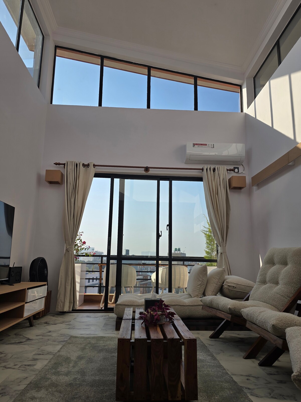 ಸಾಲು ಅವರ ಆಧುನಿಕ ಅಪಾರ್ಟ್ಮೆಂಟ್ ಎತ್ತರದ ಸೀಲಿಂಗ್ ಅನ್ನು ಒಳಗೊಂಡಿದೆ, ಅಲ್ಲಿ ಸೂರ್ಯನ ಬೆಳಕು ಹೊಡೆಯುತ್ತದೆ ಮತ್ತು ಇಡೀ ಅಪಾರ್ಟ್ಮೆಂಟ್ ಅನ್ನು ಪ್ರಕಾಶಿಸುತ್ತದೆ. ಒಂದು ಹೆಚ್ಚುವರಿ ಬಾಕ್ಸ್ ರೂಮ್, ಸಂಪೂರ್ಣ ಸುಸಜ್ಜಿತ ಅಡುಗೆಮನೆ, ಹೊರಾಂಗಣ ಪೀಠೋಪಕರಣಗಳು ಮತ್ತು ಪ್ರೈವೇಟ್ ರೂಫ್ಟಾಪ್ನೊಂದಿಗೆ 1BHK ಅನ್ನು ಒಳಗೊಂಡಿರುವ ನಮ್ಮ ವಿಶಾಲವಾದ ಅಪಾರ್ಟ್ಮೆಂಟ್ನಲ್ಲಿ ನಿಮ್ಮ ಸಮಯವನ್ನು ಆನಂದಿಸಿ. ಮೇಲಿನ ಮಹಡಿಯಲ್ಲಿ ನಮ್ಮ ಐಷಾರಾಮಿ ಒಳಾಂಗಣ ಮತ್ತು ಅಂತಿಮ ಗೌಪ್ಯತೆಯೊಂದಿಗೆ, ಇದು ನಿಮ್ಮ ಖಾಸಗಿ ಮನೆ ಎಂದು ನಿಮಗೆ ಅನಿಸುತ್ತದೆ!