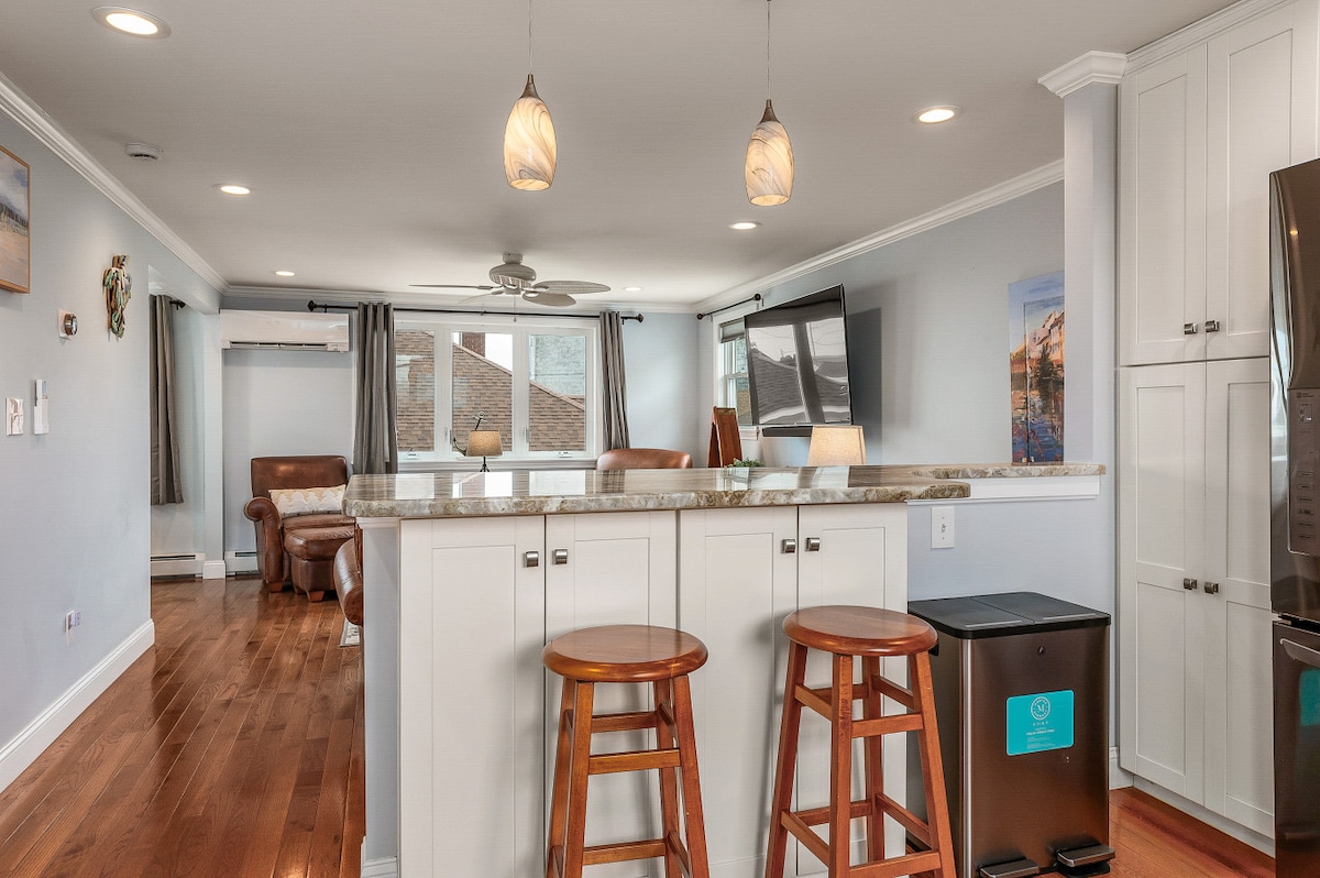 ಪೋರ್ಟ್ಸ್ಮೌತ್ನ ಹೃದಯಭಾಗದಲ್ಲಿ ಸ್ಥಳೀಯರಂತೆ ಬದುಕಿ! ಹಿಸ್ಟಾರಿಕ್ ಮಾರ್ಕೆಟ್ ಸ್ಟ್ರೀಟ್ನ ಮೇಲೆ ನಮ್ಮ ಪ್ರಕಾಶಮಾನವಾದ, ಎರಡು-ಮಟ್ಟದ ಲಾಫ್ಟ್ನಲ್ಲಿ ವಿಶ್ರಾಂತಿ ಪಡೆಯಿರಿ-ಕೆಫೆಗಳು, ಬೊಟಿಕ್ ಅಂಗಡಿಗಳು ಮತ್ತು ಹೆಚ್ಚಿನವುಗಳಿಂದ ಕೆಲವೇ ಹೆಜ್ಜೆಗಳ ದೂರದಲ್ಲಿ. ಪೋರ್ಟ್ಸ್ಮೌತ್ನ ಅತ್ಯುತ್ತಮ ರಜಾದಿನದ ಮನೆಯಲ್ಲಿ ಉಳಿಯಿರಿ! 🏆 ಸಂಪಾದಕರ ಆಯ್ಕೆ, ಕಾಂಡೆ ನಾಸ್ಟ್ ಟ್ರಾವೆಲರ್. ಇಷ್ಟಪಡಲು ಕಾರಣ ➝ ಸಂಪೂರ್ಣ ಅಡುಗೆಮನೆ ➝ ಸಾರ್ವತ್ರಿಕ ಮತ್ತು ವ್ಯಕ್ತಿತ್ವದಿಂದ ತುಂಬಿದೆ ➝ ಸ್ಕೈಲೈನ್ ವ್ಯೂ ಹೊಂದಿರುವ ಸನ್ನಿ ಡೆಕ್ ➝ ಆರಾಮದಾಯಕ ಕ್ವೀನ್ ಬೆಡ್ ➝ ವೇಗದ ವೈಫೈ, ಮೀಸಲಾದ ಕಾರ್ಯಸ್ಥಳ ➝ "ಡೆಕ್ಗಳು", ರೆಸ್ಟೋರೆಂಟ್ಗಳು ಮತ್ತು ಪ್ರೆಸ್ಕಾಟ್ ಪಾರ್ಕ್ಗೆ 2 ನಿಮಿಷ ನಡೆಯಿರಿ. ನಗರದ ಮಧ್ಯಭಾಗದಲ್ಲಿ ಆರಾಮದಾಯಕ ವಾಸ್ತವ್ಯಕ್ಕೆ ನಿಮ್ಮನ್ನು ನೀವು ಟ್ರೀಟ್ ಮಾಡಿಕೊಳ್ಳಿ—ನಿಮ್ಮ ದಿನಾಂಕಗಳನ್ನು ಇಂದೇ ಕಾಯ್ದಿರಿಸಿ!