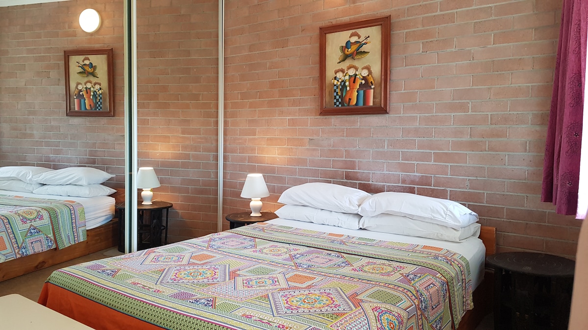 Simply furnished and air-conditioned. There is a Queen size bed in your room, some hanging room in a built-in robe with a drawer, and a table & chairs. (The room has belongings stored in the wardrobe.) The large TV has local channels & a DVD player. I have a modest range of DVDs to borrow from. I strongly recommend that if you are due to arrive in the early hours of the morning that you book the room for the night before. The room will then be available for you when you arrive.