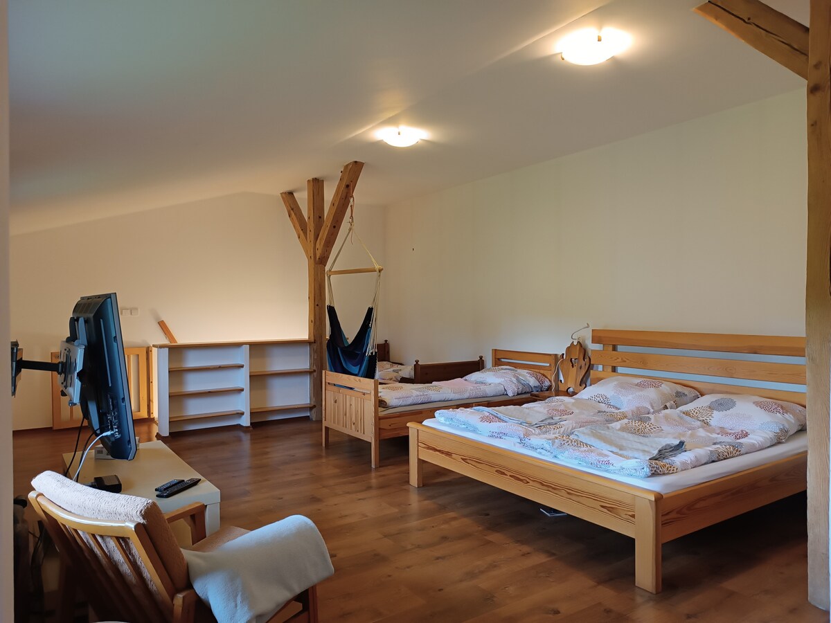 Adrspach, Broumov ಅಥವಾ ಪೋಲಿಷ್ ಗಡಿಗೆ ಪ್ರಯಾಣಿಸುತ್ತಿದ್ದೀರಾ? ನಿಮ್ಮ ಸಾಹಸಗಳಿಗೆ ನಾವು ಪರಿಪೂರ್ಣ ಆರಂಭಿಕ ಹಂತವಾಗಿದ್ದೇವೆ! ಫ್ರಿಜ್, ಡಿಶ್ವಾಶರ್, ಮೈಕ್ರೊವೇವ್, ಇಂಡಕ್ಷನ್ ಹಾಬ್ ಮತ್ತು ಓವನ್ ಸೇರಿದಂತೆ ವಿಶಾಲವಾದ ಸುಸಜ್ಜಿತ ಅಡುಗೆಮನೆಯೊಂದಿಗೆ ನಾವು ಮೊದಲ ಮಹಡಿಯಲ್ಲಿ ಅಪಾರ್ಟ್ಮೆಂಟ್ ಅನ್ನು ನೀಡುತ್ತೇವೆ. ಮುಂದೆ, ಅಪಾರ್ಟ್ಮೆಂಟ್ನಲ್ಲಿ ನೀವು ಶವರ್ ಮತ್ತು ಶೌಚಾಲಯದೊಂದಿಗೆ ಸೊಗಸಾದ ಬಾತ್ರೂಮ್ ಅನ್ನು ಕಾಣುತ್ತೀರಿ. ಅಪಾರ್ಟ್ಮೆಂಟ್ನ ಹೃದಯವು ಮರದ ಒಲೆ ಮತ್ತು ಸೋಫಾ ಹಾಸಿಗೆಯೊಂದಿಗೆ ದೊಡ್ಡ ಲಿವಿಂಗ್ ರೂಮ್ ಆಗಿದೆ. 140 ಸೆಂಟಿಮೀಟರ್ ಅಗಲದ ಹಾಸಿಗೆಯ ಮೇಲೆ ಪ್ರತ್ಯೇಕ ಮಲಗುವ ಕೋಣೆಯಲ್ಲಿ ಆರಾಮದಾಯಕ ನಿದ್ರೆ. ನಾವು ನಿಮ್ಮ ಸ್ವಂತ ವೈನ್ ಅಂಗಡಿಯಿಂದ ಫೂಸ್ಬಾಲ್ ಟೇಬಲ್ ಮತ್ತು ವೈನ್ಗಳ ಆಯ್ಕೆಯನ್ನು ನೀಡುತ್ತೇವೆ.