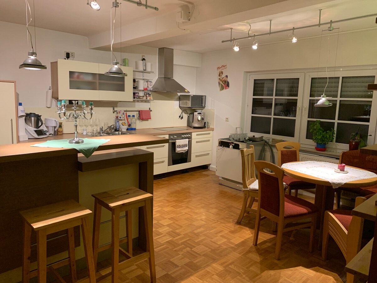 ರೋನ್ನ ಅತ್ಯಂತ ಸುಂದರವಾದ ಪ್ರದೇಶಗಳಲ್ಲಿ ಒಂದಾದ ಆಧುನಿಕ ಅಪಾರ್ಟ್ಮೆಂಟ್ನಲ್ಲಿ (70 m²). ನೀವು ಶಾಂತಿ ಮತ್ತು ಮೂಲ ಪ್ರಕೃತಿಯನ್ನು ಹುಡುಕುತ್ತಿದ್ದರೆ, ಇದು ಇರಬೇಕಾದ ಸ್ಥಳವಾಗಿದೆ. ಕಿಟಕಿಗಳಿಂದ ಅಂಗಳದವರೆಗೆ, ಗಡಿ ಪರ್ವತಗಳನ್ನು ಲೋವರ್ ಫ್ರಾಂಕೋನಿಯಾದವರೆಗೆ ಕಾಣಬಹುದು, ಉದಾ. ಡಮ್ಮರ್ಸ್ಫೆಲ್ಡ್, ಬೀಲ್ಸ್ಟೀನ್ ಮತ್ತು ಐರ್ಹಾಕ್. ಇಲ್ಲಿಂದ, ಅನೇಕ ಪ್ರಸಿದ್ಧ ವಿಹಾರ ತಾಣಗಳನ್ನು ತ್ವರಿತವಾಗಿ ತಲುಪಬಹುದು. ಉದಾ. ವಾಸ್ಸೆರ್ಕುಪ್ಪೆ, ಕ್ರೂಜ್ಬರ್ಗ್, ಫುಲ್ಡಾ, ಬ್ಯಾಡ್ ನ್ಯೂಸ್ಟಾಡ್ ಅಥವಾ ವುರ್ಜ್ಬರ್ಗ್, ಜೊತೆಗೆ ಹೈಕಿಂಗ್ ಮತ್ತು ಸೈಕ್ಲಿಂಗ್ ಟ್ರೇಲ್ಗಳು. ನೆರೆಹೊರೆಯ ಗ್ರಾಮದಲ್ಲಿ ಕುದುರೆ ಸವಾರಿ ಟ್ರಿಪ್ಗಳು ಲಭ್ಯವಿವೆ.