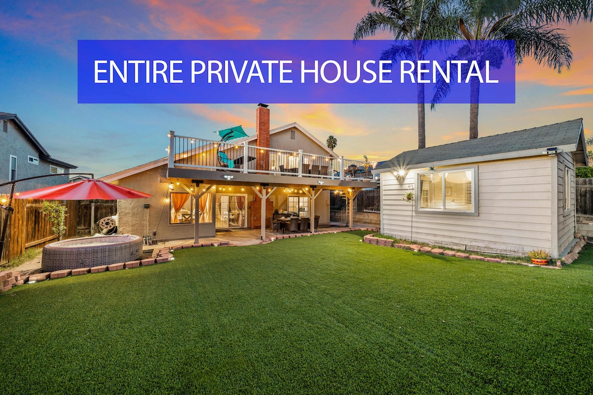 ನಮ್ಮ "ಕಾರ್ಲ್ಸ್ಬಾಡ್ ಬೀಚ್ ಸ್ಪಾ ಗೆಟ್ಅವೇ" ನಲ್ಲಿ ಸೂರ್ಯನ ಬೆಳಕಿನಲ್ಲಿ ಆರಾಮವಾಗಿರಿ! 3 ಬೆಡ್ರೂಮ್ಗಳಲ್ಲಿ 3 ಹಾಸಿಗೆಗಳು ಮತ್ತು ಏರೋಬೆಡ್ನೊಂದಿಗೆ ಮಾಸ್ಟರ್ ರಿಟ್ರೀಟ್ನೊಂದಿಗೆ ಸಂಪೂರ್ಣ ಮನೆ ಲಭ್ಯವಿದೆ. ಕಡಲತೀರದಿಂದ ಸುಮಾರು ಒಂದು ಮೈಲಿ, ಸುಲಭವಾದ ಫ್ರೀವೇ ಪ್ರವೇಶ ಮತ್ತು ಅನೇಕ ಸ್ಯಾನ್ ಡಿಯಾಗೋ ಆಕರ್ಷಣೆಗಳ ಬಳಿ. ಮಾಸ್ಟರ್ ಬಾತ್ರೂಮ್ನಲ್ಲಿ ಎರಡು ನಿರ್ಮಿಸಲಾದ 12-ಜೆಟ್ ಸ್ಪಾ ಇದೆ. ಇತರ ವೈಶಿಷ್ಟ್ಯಗಳಲ್ಲಿ ಪೂಲ್ ಟೇಬಲ್, 60 ಇಂಚಿನ ಟಿವಿ, ಫ್ರೀಸ್ಟ್ಯಾಂಡಿಂಗ್ ಬಾರ್, ಪ್ಯಾಟಿಯೋ ಡೈನಿಂಗ್ ಮತ್ತು ಅಡುಗೆಮನೆಗೆ ಸಂಪರ್ಕಿಸುವ ಪಾಸ್-ಥ್ರೂ ಬ್ರೇಕ್ಫಾಸ್ಟ್ ಬಾರ್ ಸೇರಿವೆ. ಪೂಲ್ ಮತ್ತು ಸ್ಪಾ ವಿಶಾಲವಾದ, ಬಿಸಿಯಾದ ವರ್ಷಪೂರ್ತಿ ಮತ್ತು ಕೇವಲ 2 ಬ್ಲಾಕ್ಗಳ ದೂರದಲ್ಲಿದೆ.