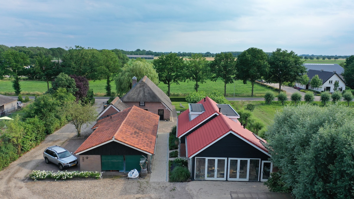 ಗೆಸ್ಟ್ಹೌಸ್ನಲ್ಲಿ ನೀವು ತಕ್ಷಣವೇ ವಿಶ್ರಾಂತಿ ವಾತಾವರಣವನ್ನು ಅನುಭವಿಸುತ್ತೀರಿ. ನೈಸರ್ಗಿಕ ವಸ್ತುಗಳ ಬಳಕೆ ಮತ್ತು ಉದ್ಯಾನ ಮತ್ತು ಪ್ರಾಣಿಗಳ ನೋಟದ ಮೂಲಕ ನೀವು ನಿಜವಾಗಿಯೂ ಗ್ರಾಮೀಣ ಪ್ರದೇಶವನ್ನು ಅನುಭವಿಸಬಹುದು. ಹೊರಗೆ ನೀವು ಮೊಲ ಅಥವಾ ಫೆಸೆಂಟ್ನಂತಹ ಎಲ್ಲಾ ರೀತಿಯ ಪ್ರಾಣಿಗಳನ್ನು ಎದುರಿಸಬಹುದು. ಮತ್ತು ಸಹಜವಾಗಿ ಕೋಳಿಗಳು ಮತ್ತು ಆಲ್ಪಾಕಾಗಳು. ಗೆಸ್ಟ್ಹೌಸ್ನಿಂದ ನೀವು ನೋಡುವ ಲೌಂಜ್ ಸೆಟ್ನಲ್ಲಿ, ನೀವು ವಿಶ್ರಾಂತಿ ಪಡೆಯಬಹುದು. ಆಲ್ಪಾಕಾಗಳನ್ನು ಹತ್ತಿರದಿಂದ ತಿಳಿದುಕೊಳ್ಳಲು ನೀವು ಹುಲ್ಲುಗಾವಲಿಗೆ ನೇರವಾಗಿ ನಡೆಯುತ್ತೀರಿ.