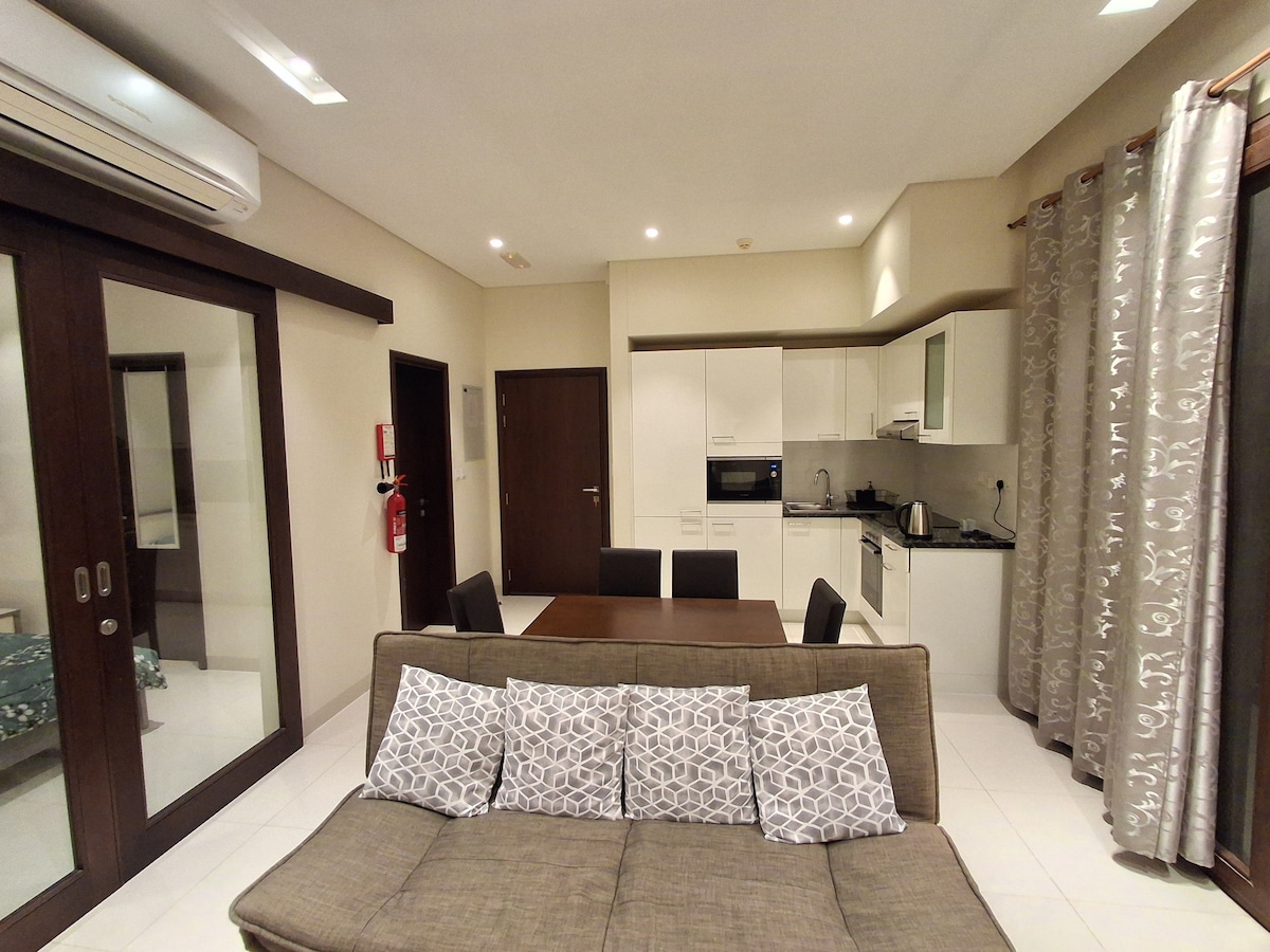 ಈ ವಿಶಿಷ್ಟವಾದ ಒಂದು ಬೆಡ್ರೂಮ್ ಅಪಾರ್ಟ್ಮೆಂಟ್ ಆದರ್ಶಪ್ರಾಯವಾಗಿ ಮಸ್ಕತ್\ ಅಲ್ ಮೌಜ್ನಲ್ಲಿದೆ, ಅದ್ಭುತ ಸಮುದ್ರದ ನೋಟವನ್ನು ಹೊಂದಿದೆ. -- ದಿ ಸ್ಪೇಸ್-- ಆಧುನಿಕ ಪೀಠೋಪಕರಣಗಳೊಂದಿಗೆ ಶಾಂತ, ಸ್ವಚ್ಛ ಮತ್ತು ಆರಾಮದಾಯಕತೆಯು ವಿಶ್ರಾಂತಿ ಮತ್ತು ಆನಂದಕ್ಕಾಗಿ ಪರಿಪೂರ್ಣವಾಗಿಸುತ್ತದೆ. ಈಜುಕೊಳಗಳು, ಜಿಮ್, ಮಕ್ಕಳ ಆಟದ ಪ್ರದೇಶ, ಕಡಲತೀರಕ್ಕೆ ಪ್ರವೇಶ, ಮರೀನಾ, ಕೆಫೆ, ಅಂಗಡಿಗಳು ಮತ್ತು ಕಟ್ಟಡದ ಒಳಗೆ ಮತ್ತು ಹೊರಾಂಗಣದಲ್ಲಿ ಉತ್ತಮ ರೆಸ್ಟೋರೆಂಟ್ಗಳು\ ಪ್ರದೇಶ. ಉನ್ನತ ದರ್ಜೆಯ ಸೌಲಭ್ಯಗಳ ಜಿಮ್, ಪೂಲ್, ಬಿಗ್ ಟಿವಿ, 5 ಜಿ ವೈಫೈ, ಹೋಟೆಲ್-ಗುಣಮಟ್ಟದ ಲಿನೆನ್ಗಳು ಮತ್ತು ಟವೆಲ್ಗಳು ಮತ್ತು ನಿಮ್ಮ ಬೆರಳ ತುದಿಯಲ್ಲಿಯೇ ಸಂಪೂರ್ಣವಾಗಿ ವಿಶ್ರಾಂತಿ ಪಡೆಯಿರಿ!