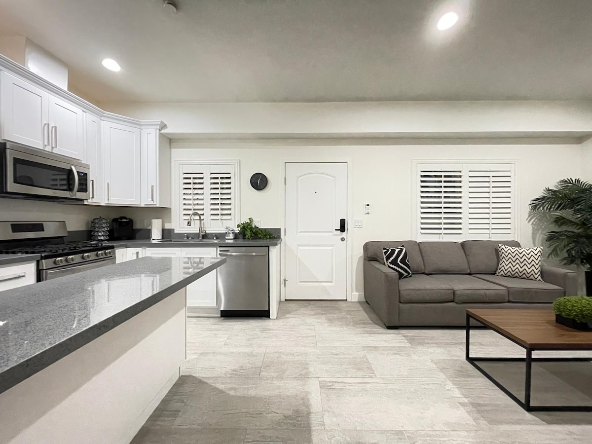 ಸ್ಟುಡಿಯೋ ಅಪಾರ್ಟ್ಮೆಂಟ್ಗೆ ಪ್ರವೇಶಿಸುವಾಗ, ನೀವು ಅಮೃತಶಿಲೆಯ ಫ್ಲೋರಿಂಗ್ಗೆ ವಿಶ್ರಾಂತಿಗಾಗಿ ವಿನ್ಯಾಸಗೊಳಿಸಲಾದ ಆಹ್ವಾನಿಸುವ ತೆರೆದ ಸ್ಥಳಕ್ಕೆ ಹೆಜ್ಜೆ ಹಾಕುತ್ತೀರಿ. ತಡೆರಹಿತ ಬ್ರೌಸಿಂಗ್ಗಾಗಿ ನಮ್ಮ ವೇಗದ 1000Mbps ಡೌನ್ ಮತ್ತು 20-50Mbps ಅಪ್ ವೈ-ಫೈಗೆ ಸಂಪರ್ಕಪಡಿಸಿ. ಈ ಸ್ಟುಡಿಯೋ ಅಪಾರ್ಟ್ಮೆಂಟ್ ಎಲ್ಲಾ ಹೊಸ ಉಪಕರಣಗಳು ಮತ್ತು 55" ಸ್ಮಾರ್ಟ್ ಟಿವಿ ಹೊಂದಿರುವ ಖಾಸಗಿ ವಾಸದ ಸ್ಥಳವಾಗಿದೆ. ಆರೆಂಜ್ ಕೌಂಟಿಯ ಸೌಂದರ್ಯವನ್ನು ಅನ್ವೇಷಿಸಲು ಬಯಸುವ ಪ್ರವಾಸಿಗರಿಗೆ ಇದು ಸೂಕ್ತ ಆಯ್ಕೆಯಾಗಿದೆ. ಶಾಪಿಂಗ್ ಮತ್ತು ಊಟಕ್ಕಾಗಿ, ಹತ್ತಿರದ ಕೇಂದ್ರವು ನಾರ್ಡ್ಸ್ಟ್ರೋಮ್ಸ್, ಜೆಸಿ ಪೆನ್ನಿ, ಆಲ್ಡೋ, ಕ್ಯಾಲಿಫೋರ್ನಿಯಾ ಪಿಜ್ಜಾ ಕಿಚನ್ ಮತ್ತು ಹೆಚ್ಚಿನದನ್ನು ಹೊಂದಿದೆ.