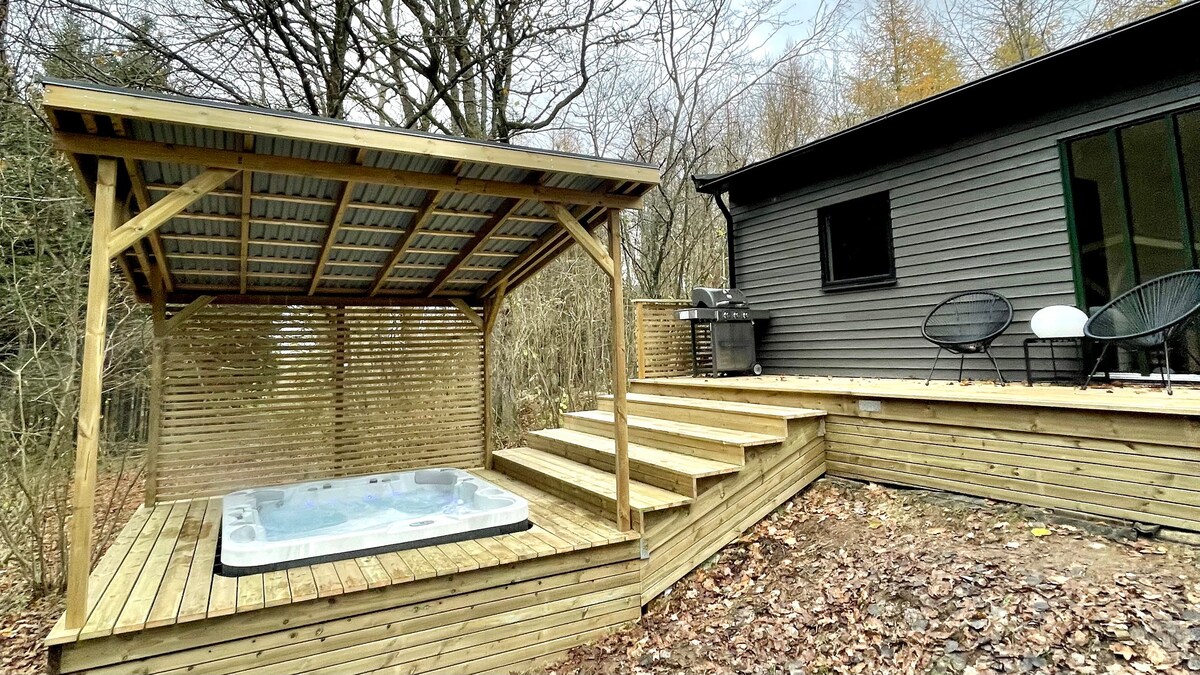 ಈ ವಿಶಿಷ್ಟ ಮತ್ತು ಪ್ರಶಾಂತವಾದ ವಿಹಾರದಲ್ಲಿ ಆರಾಮವಾಗಿರಿ. ಫೈರ್ ಪಿಟ್, ಜಾಕುಝಿ ಮತ್ತು ಸೌನಾವನ್ನು ಒಳಗೊಂಡಿರುವ 40m2 ಒಳಾಂಗಣದ ಬಳಕೆಯನ್ನು ತರುತ್ತದೆ ಮತ್ತು ಹೊರಾಂಗಣ ವಾತಾವರಣವನ್ನು ಆನಂದಿಸಲು ನಿಮಗೆ ಅನುವು ಮಾಡಿಕೊಡುತ್ತದೆ! ಎತ್ತರದ ಮರಗಳಿಂದ ಸುತ್ತುವರೆದಿರುವ ಈ ಆಧುನಿಕ ಇನ್ನೂ ಸರಳ ಕ್ಯಾಬಿನ್ ಅನ್ನು ನಿಮ್ಮ ಬೆರಳ ತುದಿಯಲ್ಲಿ ಅರಣ್ಯ ಭೂದೃಶ್ಯದೊಂದಿಗೆ ಪ್ರಕೃತಿ ಮಾತೆಯಲ್ಲಿ ಐಷಾರಾಮಿ ವಿಹಾರವನ್ನು ತರಲು ಚಿಂತನಶೀಲವಾಗಿ ವಿನ್ಯಾಸಗೊಳಿಸಲಾಗಿದೆ. ತುಂಬಾ ದೂರದಲ್ಲಿ ತೆಗೆದುಹಾಕದೆ ಸಮರ್ಪಕವಾದ ಏಕಾಂತತೆಯ ಪ್ರಮಾಣ. ನೀವು ವಿಶ್ರಾಂತಿ ಪಡೆಯಲು ಮತ್ತು ಚೇತರಿಸಿಕೊಳ್ಳಲು ಅಗತ್ಯವಿರುವ ಎಲ್ಲಾ ಸೌಲಭ್ಯಗಳನ್ನು ಆನಂದಿಸಿ.