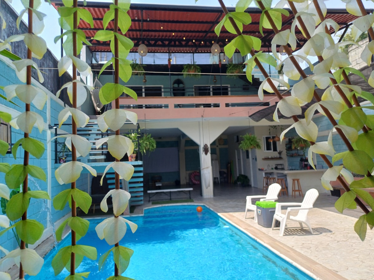 ಪಾಪಾಂಟ್ಲಾದ ಐತಿಹಾಸಿಕ ಕೇಂದ್ರದಿಂದ ಸ್ವತಂತ್ರ ವಸತಿ 2 ಬ್ಲಾಕ್ಗಳು. ಹವಾನಿಯಂತ್ರಿತ ಬೆಡ್ರೂಮ್, ಡೈನಿಂಗ್ ರೂಮ್, ಬಾತ್ರೂಮ್ ಮತ್ತು ವಿಶ್ರಾಂತಿ ಪಡೆಯಲು ಹೊರಾಂಗಣ ಸ್ಥಳಗಳು. ಕಾರ್ಯತಂತ್ರದ ಸ್ಥಳದಲ್ಲಿ ಗೌಪ್ಯತೆ, ಸ್ವಚ್ಛತೆ ಮತ್ತು ಆರಾಮವನ್ನು ಬಯಸುವ ಪ್ರವಾಸಿಗರಿಗೆ ಸೂಕ್ತವಾಗಿದೆ. ಕಾಲ್ನಡಿಗೆಯಲ್ಲಿ ಅನ್ವೇಷಿಸಿ, ಶಾಂತ ವಾತಾವರಣವನ್ನು ಆನಂದಿಸಿ ಮತ್ತು ನಿಮ್ಮ ಆರಾಮದಾಯಕ ರಿಟ್ರೀಟ್ನಿಂದ ಈ ಮಾಂತ್ರಿಕ ಪಟ್ಟಣದ ಸಾರವನ್ನು ಅನ್ವೇಷಿಸಿ.
