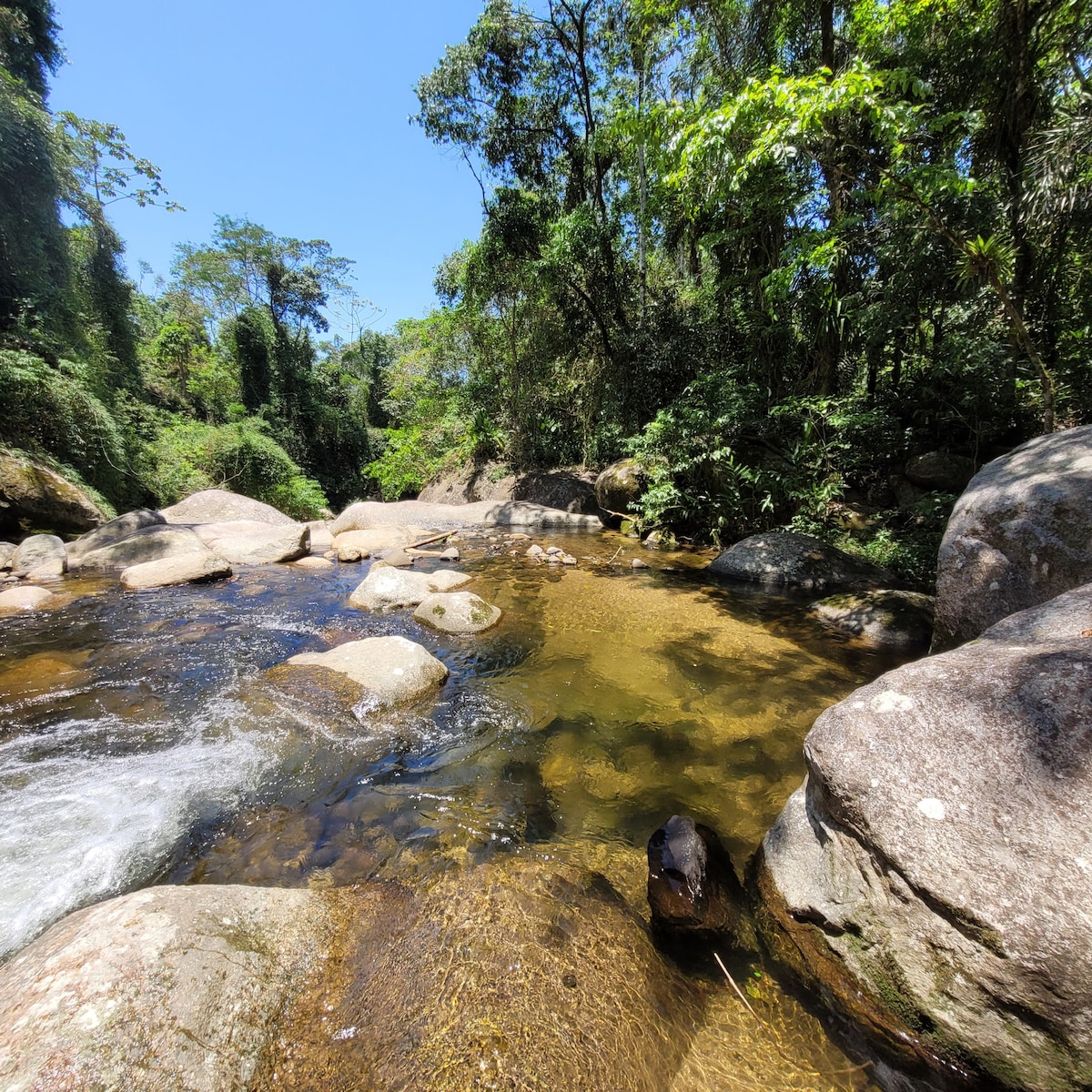 ಅಟ್ಲಾಂಟಿಕ್ ಅರಣ್ಯದಲ್ಲಿ ಶಾಂತಿಯುತ ದಿನಗಳವರೆಗೆ ಅನನ್ಯ ರಿಟ್ರೀಟ್ ಮತ್ತು ಪ್ಯಾರಟಿ ಮತ್ತು ಅದರ ಸುತ್ತಮುತ್ತಲಿನ ಪ್ರದೇಶಗಳನ್ನು ಅನ್ವೇಷಿಸಲು ಆರಾಮದಾಯಕವಾದ ನೆಲೆಯಾಗಿದೆ. ಪ್ರಕೃತಿ, ವನ್ಯಜೀವಿ ಮತ್ತು ನದಿಯ ಸ್ವಚ್ಛ ನೀರು ಮತ್ತು ಪ್ರಾಪರ್ಟಿ ಗಡಿಗಳಲ್ಲಿರುವ ಜಲಪಾತವನ್ನು ಸಂಪರ್ಕ ಕಡಿತಗೊಳಿಸಿ, ವಿಶ್ರಾಂತಿ ಪಡೆಯಿರಿ, ಆನಂದಿಸಿ. ಪಕ್ಷಿ ವೀಕ್ಷಕರ ಸ್ವರ್ಗ, ನಾವು ಪ್ರಾಪರ್ಟಿ ಮೈದಾನದಲ್ಲಿ 190 ಕ್ಕೂ ಹೆಚ್ಚು ಪ್ರಭೇದಗಳನ್ನು ದಾಖಲಿಸಿದ್ದೇವೆ ಮತ್ತು ಸಂಖ್ಯೆ ಬೆಳೆಯುತ್ತಲೇ ಇದೆ. ಪ್ಯಾರಟಿ ಸಿಟಿ ಸೆಂಟರ್ನಿಂದ ಕೇವಲ 10 ಕಿ.