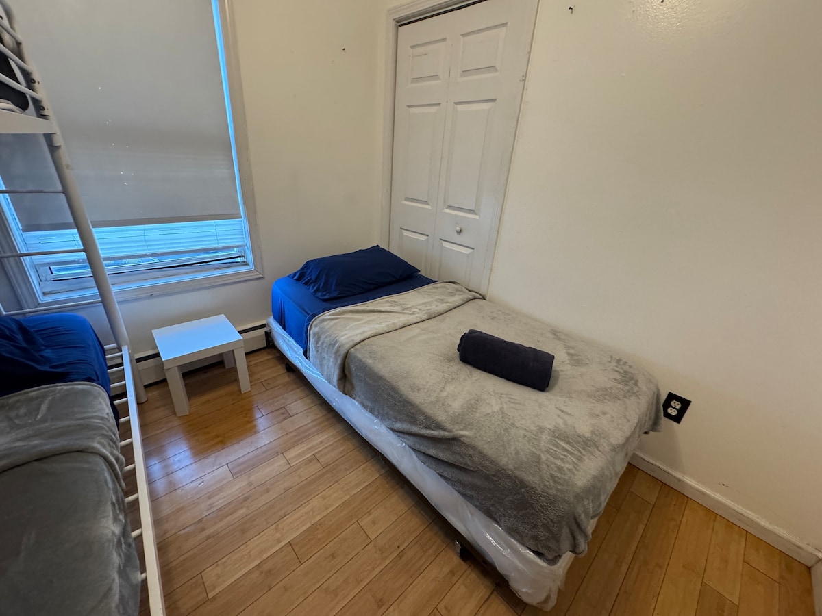 1 ವ್ಯಕ್ತಿಗೆ ಸೂಕ್ತವಾದ ವಿಶಿಷ್ಟ ಗೆಸ್ಟ್ ಸೂಟ್ (ನಾವು 2 ಅನ್ನು ಅನುಮತಿಸುತ್ತೇವೆ). ಇದು ಚಿಕ್ಕದಾಗಿದೆ! NYC ಗೆ $5 ಬಸ್ 1 ಬ್ಲಾಕ್ ದೂರದಲ್ಲಿದೆ. NYC ಗೆ 20 ನಿಮಿಷಗಳನ್ನು ತೆಗೆದುಕೊಳ್ಳುತ್ತದೆ (ರಶ್ ಅವರ್ ಹೊರತುಪಡಿಸಿ) * NYC ಗೆ ಉಚಿತ ಟ್ರಿಪ್ಗಳು! ದಿನಗಳು/ಸಮಯಗಳಿಗಾಗಿ ನಮ್ಮ "ವೇಳಾಪಟ್ಟಿ" ಅನ್ನು ಓದಿ. * 1 ಡಬಲ್ ಬೆಡ್ + ಸೌಂಡ್ಪ್ರೂಫ್ ಗೋಡೆಗಳು! ಸಂಪೂರ್ಣವಾಗಿ ಖಾಸಗಿ! * ಸಣ್ಣ ಅಡುಗೆಮನೆಯು ಪೋರ್ಟಬಲ್ ಕುಕಿಂಗ್ ರೇಂಜ್, ಮಡಕೆಗಳು/ಪಾತ್ರೆಗಳು, ಮಿನಿ-ಫ್ರಿಜ್, ಮಿನಿ-ಫ್ರೀಜರ್, ಮೈಕ್ರೊವೇವ್, ಟೋಸ್ಟರ್ ಅನ್ನು ಹೊಂದಿದೆ. * ನೀವು ನಿಯಂತ್ರಿಸುವ ಕೇಂದ್ರ ತಾಪನ/ಶೀತಲೀಕರಣ! * ಮೊದಲು ಮತ್ತು ನಂತರ ಉಚಿತ ಲಗೇಜ್ ಸಂಗ್ರಹಣೆ! * ಡ್ರೈವ್ವೇ ಪಾರ್ಕಿಂಗ್ ಸಾಧ್ಯ, ಆದರೆ ದಯವಿಟ್ಟು ಮೊದಲು ವಿಚಾರಿಸಿ.