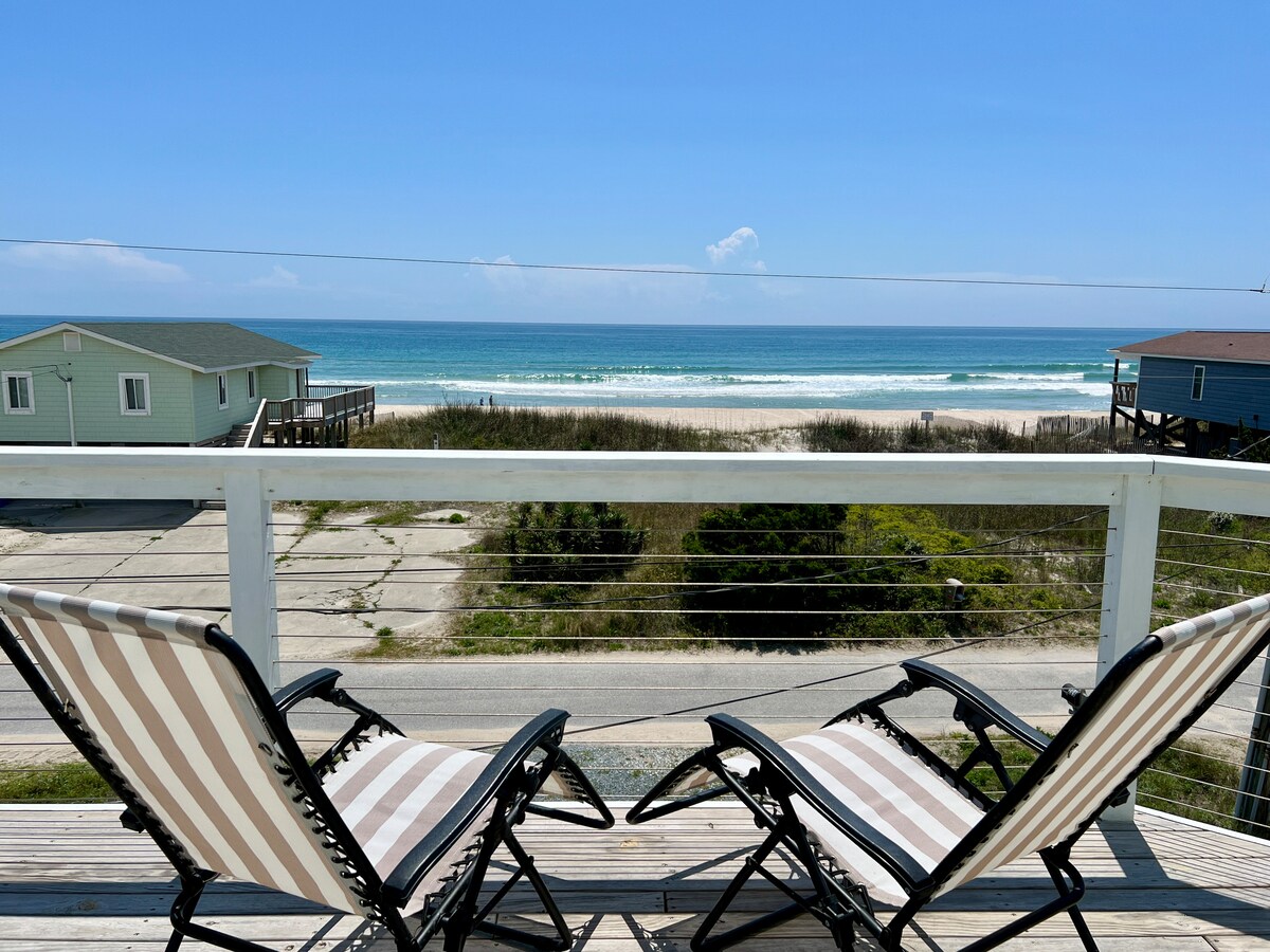ಅಟ್ಲಾಂಟಿಕ್ ಓಷನ್ಫ್ರಂಟ್ ಅಟ್ಲಾಂಟಿಕ್ನಲ್ಲಿಯೇ ಶಾಂತವಾದ ಡೆಡ್ ಎಂಡ್ ಸ್ಟ್ರೀಟ್. ಮನೆಯ ಪ್ರತಿ ಬದಿಯಲ್ಲಿ 100 ಅಡಿಗಳ ಒಳಗೆ ಯಾರೂ ಇಲ್ಲ. ಅತ್ಯುತ್ತಮ ಸ್ಥಳ ಮತ್ತು ವೀಕ್ಷಣೆ! ತಯಾರಿಸಿದ ಹಾಸಿಗೆಗಳು ಸ್ನಾನದ ಲಿನೆನ್ಗಳನ್ನು ಒದಗಿಸಲಾಗಿದೆ. ಸೂರ್ಯೋದಯ ಮತ್ತು ಸೂರ್ಯಾಸ್ತವನ್ನು ನೋಡಲು 6 ಎತ್ತರದ ಕುರ್ಚಿಗಳೊಂದಿಗೆ ಕವರ್ ಮಾಡಿದ ಡೆಕ್. ಅಲೆಗಳನ್ನು ಕೇಳಿ, ಪೆಲಿಕನ್ಗಳು ಮತ್ತು ಡಾಲ್ಫಿನ್ಗಳು ಪ್ರತಿದಿನ ಈಜುವುದನ್ನು ನೋಡಿ. ಬಿಸಿ ಮತ್ತು ತಂಪಾದ ನೀರಿನಿಂದ ಹೊರಾಂಗಣ ಶವರ್. ಮಾಸ್ಟರ್ ಸೂಟ್ನಲ್ಲಿ ಕಿಂಗ್ ಮೆಮೊರಿ ಫೋಮ್ ಬೆಡ್. ಸರ್ಫ್ ಸಿಟಿ ಸೇತುವೆಗೆ 3 ಮೈಲಿ. ದೊಡ್ಡ ಸ್ಕ್ರೀನ್ ಸ್ಮಾರ್ಟ್ ಟಿವಿ /ರೋಕು.