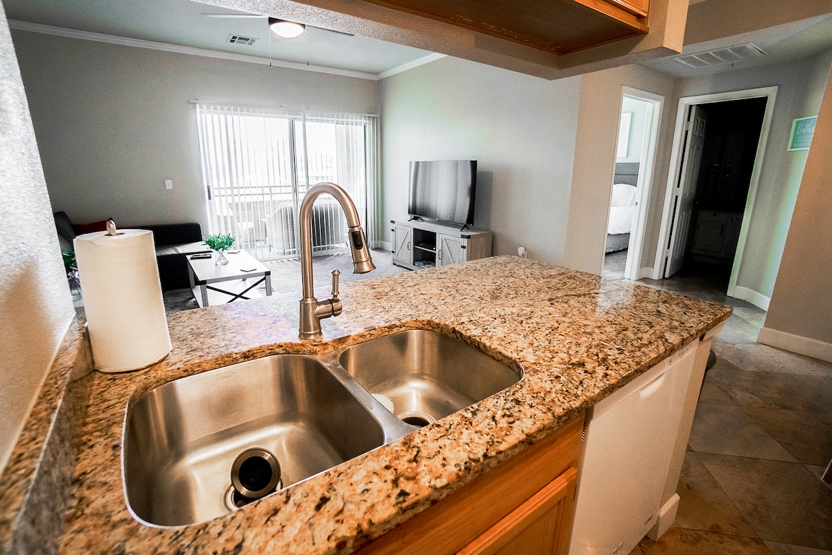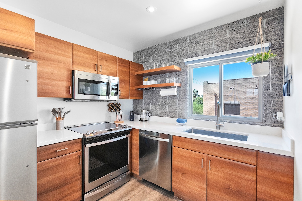 ಕೀ ಕಾಂಡೋವನ್ನು ತಿರುಗಿಸಿ! ಪೂರ್ವ ಮೆಸಾದ ಅತ್ಯಂತ ಸ್ತಬ್ಧ ಪ್ರದೇಶದಲ್ಲಿ 2 BR ಕಾಂಡೋವನ್ನು ಸುಂದರವಾಗಿ ಅಪ್ಗ್ರೇಡ್ ಮಾಡಿ! ಹೊಸ ಹವಾನಿಯಂತ್ರಣ, ಯುನಿಟ್ನಲ್ಲಿ ವಾಷರ್-ಡ್ರೈಯರ್. ನಿಮ್ಮ ವಾಸ್ತವ್ಯ, ಲಿನೆನ್ಗಳು, ಟವೆಲ್ಗಳು, ಭಕ್ಷ್ಯಗಳು, ನೀವು ಯೋಚಿಸಬಹುದಾದ ಎಲ್ಲಾ ಅಡುಗೆಮನೆ ಗ್ಯಾಜೆಟ್ಗಳು, 2 ವಾಲ್-ಮೌಂಟ್ ಟಿವಿಗಳು, ಹೆಚ್ಚಿನ ವೇಗದ ಇಂಟರ್ನೆಟ್ಗೆ ನಿಮಗೆ ಅಗತ್ಯವಿರುವ ಎಲ್ಲವೂ. ಯೂಟ್ಯೂಬ್ ಟಿವಿ, ಪ್ರೈಮ್, ಹುಲು ಮತ್ತು ಇತರ ಎಲ್ಲ ಸಕ್ರಿಯರೊಂದಿಗೆ ಲಿವಿಂಗ್ ಮತ್ತು ಮಾಸ್ಟರ್ನಲ್ಲಿ ರೋಕು. ನಿಮ್ಮ ದಿಂಬಿನ ಬಗ್ಗೆ ಉತ್ಸುಕರಾಗಿದ್ದೀರಾ? ಸಮತಟ್ಟಾದವುಗಳು, ಮಾನದಂಡಗಳು ಮತ್ತು "ಬ್ಲ್ಯಾಕ್ ಲೇಬಲ್" ನಯವಾದವುಗಳೊಂದಿಗೆ ನೀವು ಕವರ್ ಆಗಿದ್ದೀರಿ! ಸಣ್ಣ ಸಂಕೀರ್ಣದ ಹಿಂಭಾಗದಲ್ಲಿ ಶಾಂತ ಡೌನ್ಸ್ಟೇರ್ಸ್ ಯುನಿಟ್