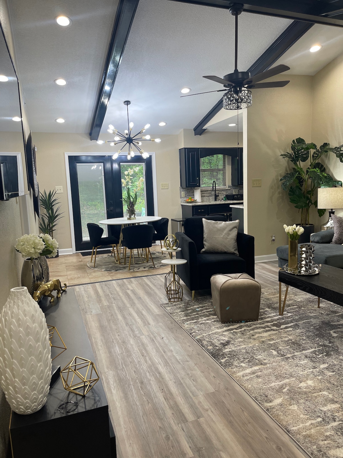 ಪ್ರತಿ ಸಂದರ್ಭಕ್ಕೂ ಸೂಕ್ತವಾಗಿದೆ ಕುಟುಂಬ ಪುನರ್ಮಿಲನವನ್ನು ಯೋಜಿಸುತ್ತಿದ್ದೀರಾ, ಸ್ನೇಹಿತರೊಂದಿಗೆ ಹಿಮ್ಮೆಟ್ಟುತ್ತೀರಾ ಅಥವಾ ವ್ಯವಹಾರದ ಟ್ರಿಪ್ ಅನ್ನು ಯೋಜಿಸುತ್ತಿದ್ದೀರಾ? ನಮ್ಮ ವಿಶಾಲವಾದ ಮನೆ ಹತ್ತು ಗೆಸ್ಟ್ಗಳಿಗೆ ಅವಕಾಶ ಕಲ್ಪಿಸುತ್ತದೆ, ಸ್ಮರಣೀಯ ಕೂಟಗಳಿಗೆ ಪರಿಪೂರ್ಣ ಸೆಟ್ಟಿಂಗ್ ಅನ್ನು ನೀಡುತ್ತದೆ. ಲಿವಿಂಗ್ ರೂಮ್ ಮತ್ತು ಡೈನಿಂಗ್ ಏರಿಯಾವು ಸಾಕಷ್ಟು ಆಸನ ಮತ್ತು ದೊಡ್ಡ ಡೈನಿಂಗ್ ಟೇಬಲ್ನೊಂದಿಗೆ ಸಾಮಾಜಿಕ ಸಂವಹನಗಳನ್ನು ಬೆಳೆಸುತ್ತದೆ. ನಮ್ಮ ಸುಂದರವಾದ ಒಳಾಂಗಣ ಒಳಾಂಗಣವನ್ನು ಆನಂದಿಸಿ, ಯಾವುದೇ ಹವಾಮಾನಕ್ಕೆ ಸೂಕ್ತವಾಗಿದೆ, ವಿಶ್ರಾಂತಿ ಪಡೆಯಲು ಮತ್ತು ಒಟ್ಟುಗೂಡಿಸಲು ಪ್ರಶಾಂತವಾದ ಸ್ಥಳವನ್ನು ಒದಗಿಸುತ್ತದೆ. ನಿಮ್ಮ ವಾಸ್ತವ್ಯವನ್ನು ಮರೆಯಲಾಗದಂತೆ ಮಾಡುವ ಆರಾಮ, ಸ್ಥಳ ಮತ್ತು ಸೌಲಭ್ಯಗಳನ್ನು ಅನುಭವಿಸಿ.