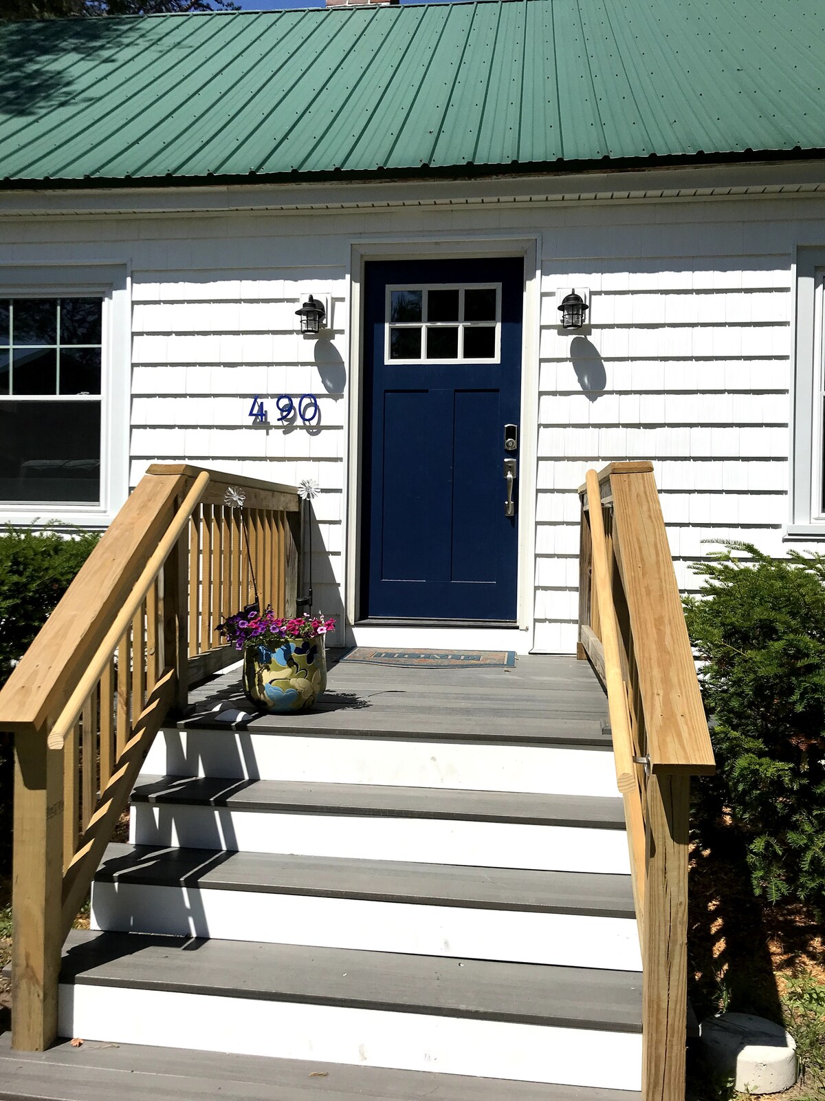 Newly rebuilt - the Pine Grove is air conditioned and features a 10 by 14 ft deck, a brand new bathroom with tub, bedroom closets, and a full kitchen. It is one half of two charming rustic cottages set on a single plot on a leafy side-street. This cottage is wedged in a "grove" of tall majestic pine trees that provide an abundant supply of shade and breeze, pine cones, needles and all. It is great for families with children and a short walk (.4 of a mile) through the neighborhood to the beach.