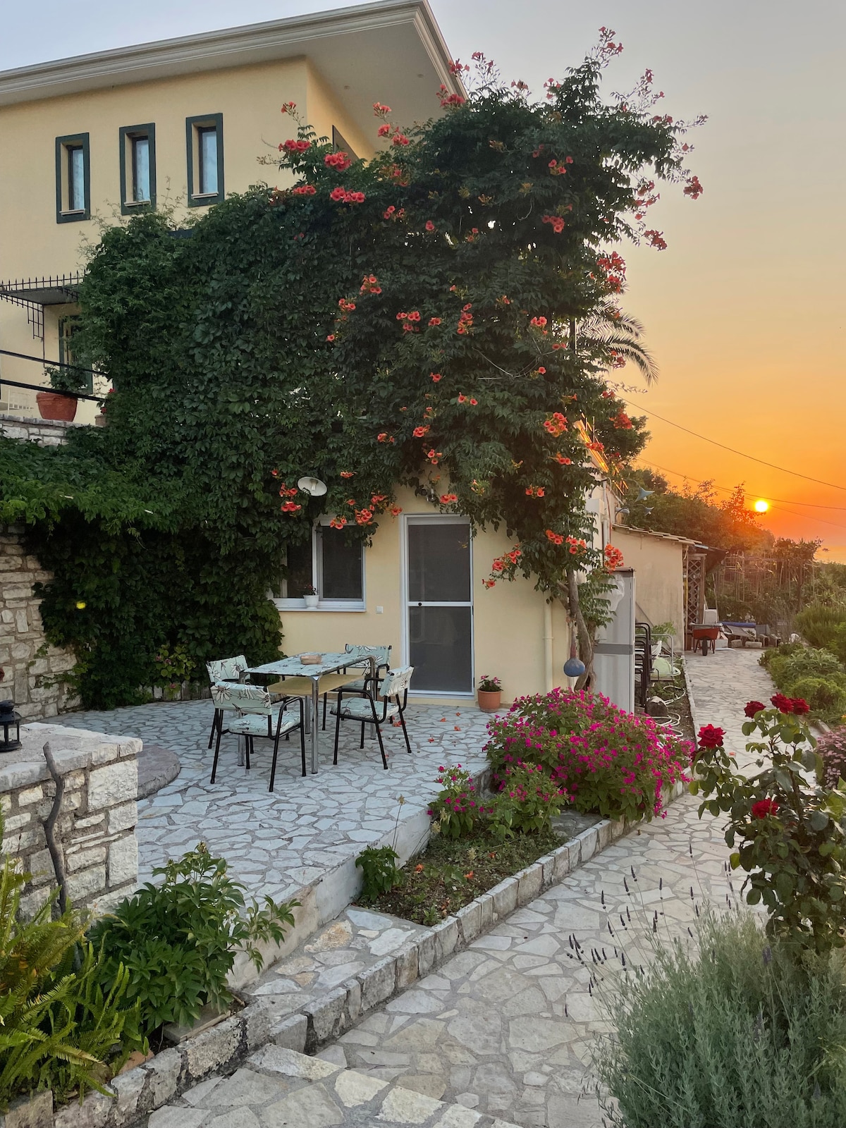 ಸನ್ನಿ ಗಾರ್ಡನ್ ಪ್ಲಾಟೇರಿಯಾದಲ್ಲಿದೆ, ಇದು ಥೆಸ್ಪ್ರೊಟಿಯಾದ ಪ್ರಿಫೆಕ್ಚರ್ನಲ್ಲಿರುವ ಸುಂದರವಾದ ಹಳ್ಳಿಯಾಗಿದೆ, ಇದು ಇಗೌಮೆನಿಟ್ಸಾ ನಗರದಿಂದ 12 ಕಿಲೋಮೀಟರ್ ಮತ್ತು ಶಿವೋಟಾದ ಪ್ರವಾಸಿ ರೆಸಾರ್ಟ್ನಿಂದ 12 ಕಿಲೋಮೀಟರ್ ದೂರದಲ್ಲಿದೆ. ಇದು ಊಟವನ್ನು ಸಿದ್ಧಪಡಿಸುವ ಸಾಧ್ಯತೆಯೊಂದಿಗೆ ನಾಲ್ಕು ಜನರಿಗೆ ಅವಕಾಶ ಕಲ್ಪಿಸಲು 70 ಚದರ ಮೀಟರ್ನ ಎರಡು ಕೋಣೆಗಳ ಅಪಾರ್ಟ್ಮೆಂಟ್ ಅನ್ನು ಒಳಗೊಂಡಿದೆ. ಇದು BBQ ಹೊಂದಿರುವ ದೊಡ್ಡ ಉದ್ಯಾನವನ್ನು ಹೊಂದಿದೆ, ಇದು ವಿಶ್ರಾಂತಿಗೆ ಸೂಕ್ತವಾಗಿದೆ. ಸಾವಯವ ಉತ್ಪನ್ನಗಳನ್ನು ಕಥಾವಸ್ತುವಿನೊಳಗೆ ಬೆಳೆಯಲಾಗುತ್ತದೆ ಮತ್ತು ವಿನಂತಿಯ ಮೇರೆಗೆ ಗೆಸ್ಟ್ಗಳಿಗೆ ಒದಗಿಸಲಾಗುತ್ತದೆ.