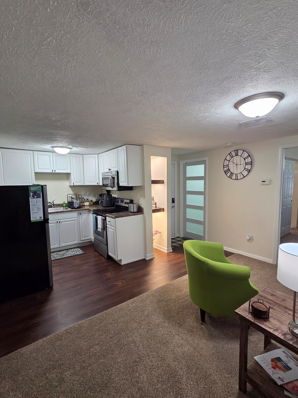 ಮುಖ್ಯ ಹಂತದ ಅಪಾರ್ಟ್ಮೆಂಟ್. ಎಲ್ಲಾ ಅಡುಗೆ ಅಗತ್ಯಗಳು, ಗ್ರಾನೈಟ್ ಕೌಂಟರ್ ಟಾಪ್ಗಳು ಮತ್ತು ಸ್ಟೇನ್ಲೆಸ್ ಸ್ಟೀಲ್ ಉಪಕರಣಗಳಿಗಾಗಿ ಅಡುಗೆಮನೆಯನ್ನು ಸಂಪೂರ್ಣವಾಗಿ ಸಂಗ್ರಹಿಸಲಾಗಿದೆ. ಅನನ್ಯ ಊಟದ ಆಯ್ಕೆಗಳು ಮತ್ತು ಮನರಂಜನಾ ಸ್ಥಳಗಳು, ಸ್ವಲ್ಪ ದೂರ ನಡೆಯಿರಿ. Bdrms ನಲ್ಲಿ ಹೈಪೋಲಾರ್ಜನಿಕ್ ಕಾರ್ಪೆಟಿಂಗ್, ಮರದ ನೋಟದ ಐಷಾರಾಮಿ ವಿನೈಲ್ ಪ್ಲಾಂಕ್ ಫ್ಲೋರಿಂಗ್ ಉಳಿದ ಅಪಾರ್ಟ್ಮೆಂಟ್ ಮತ್ತು ಲಿವಿಂಗ್/ಡೈನಿಂಗ್ ಏರಿಯಾ ಮತ್ತು ಎಲ್ಲಾ ಬೆಡ್ರೂಮ್ಗಳಲ್ಲಿ 10 ಅಡಿಗಳಷ್ಟು ಸೀಲಿಂಗ್ಗಳು w/ಫ್ಯಾನ್ಗಳು. ಓಪನ್ ಫ್ಲೋರ್ ಪ್ಲಾನ್. 43"ಗೆಸ್ಟ್ಗಳಿಗೆ ರೋಕು ಟಿವಿ w/ ವೈಫೈ ಸರಬರಾಜು ಮಾಡಲಾಗಿದೆ. 2 ಅಪಾರ್ಟ್ಮೆಂಟ್ಗಳಿಗೆ 1 ಪ್ಯಾಕ್ ಎನ್ ಪ್ಲೇ ಮಾಡಿ, ಆದ್ದರಿಂದ ಅದಕ್ಕಾಗಿ ಸಂದೇಶ ವಿನಂತಿಸಿ. 1 ನೇ ವಿನಂತಿಯು ಅದನ್ನು ಬಳಸಬಹುದು
