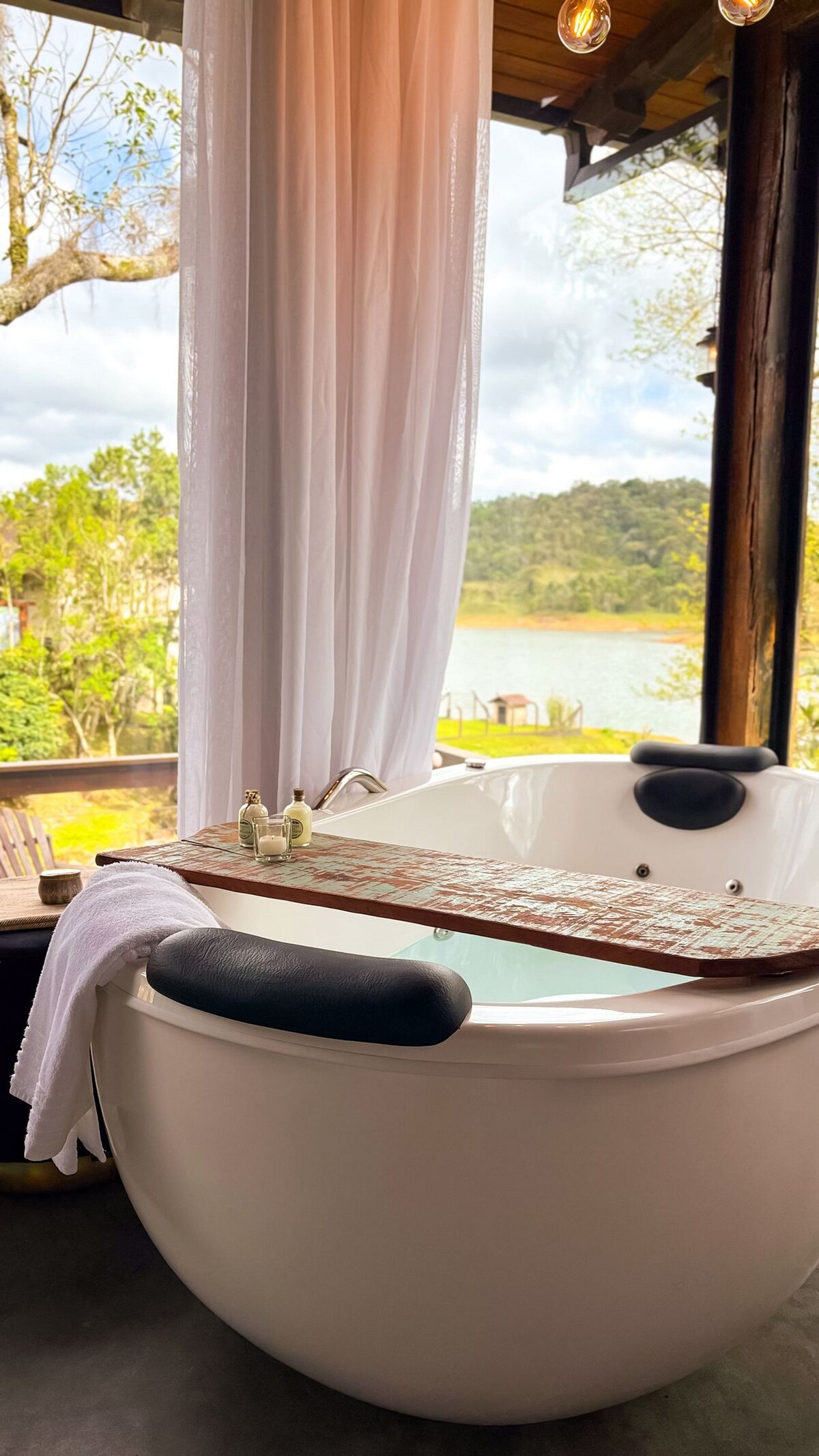 Espetacular e Privativa - @amoradacabanas A Cabana das Bromélias é um refúgio romântico com banheira vintage restaurada e vista plena para a mata e cachoeira. Relaxe na rede do deck e aproveite o charme do teto de vidro sobre a cama, criando um ambiente único, intimista e perfeito para casais que buscam conexão com a natureza. ☕ Café da manhã: opcional, mediante solicitação no ato da reserva ou até 24h antes do check-in.