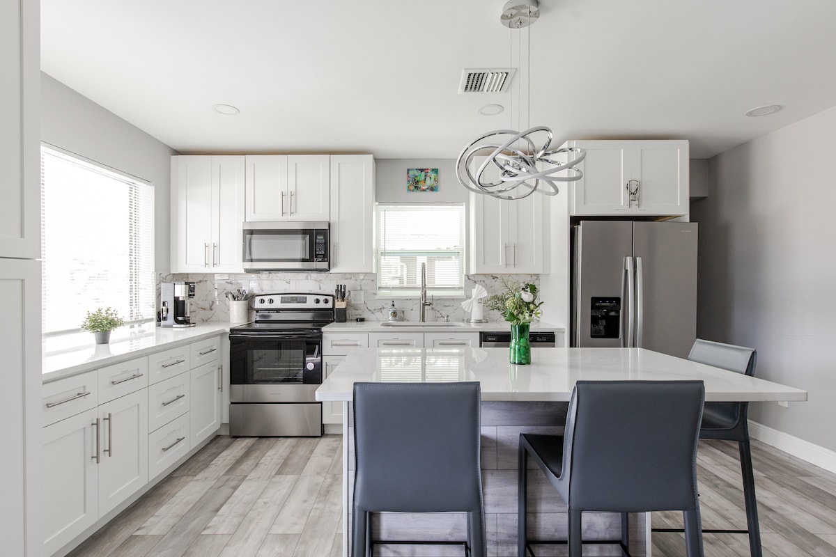 ಬನ್ನಿ ಮತ್ತು ಸ್ಥಳೀಯ ಅನುಭವವನ್ನು ಹೊಂದಿರಿ, ಆದರೆ ನಿಮ್ಮ ಸ್ವಂತ ಸ್ಟುಡಿಯೊದ ಗೌಪ್ಯತೆಯೊಂದಿಗೆ! ಸ್ತಬ್ಧ, ಕುಟುಂಬ ಕೇಂದ್ರಿತ ನೆರೆಹೊರೆಯಲ್ಲಿ ಸಂಪೂರ್ಣವಾಗಿ ನವೀಕರಿಸಿದ ಗೆಸ್ಟ್ ಸೂಟ್. ಮಿನಿ ಫ್ರಿಜ್, ಮೈಕ್ರೊವೇವ್, ಸಿಂಕ್, ಎಲೆಕ್ಟ್ರಿಕ್ ಬರ್ನರ್, ಎಲೆಕ್ಟ್ರಿಕ್ ಗ್ರಿಲ್ ಮತ್ತು ನಿಮ್ಮ ಸ್ವಂತ ವಾಷರ್ ಮತ್ತು ಡ್ರೈಯರ್ನೊಂದಿಗೆ ಹೊಚ್ಚ ಹೊಸ ಎಲ್ಲವೂ, ಐಷಾರಾಮಿ ಜಲಪಾತದ ಶವರ್, ಆರಾಮದಾಯಕ ಕಿಂಗ್ ಬೆಡ್, ಸ್ಮಾರ್ಟ್ ಟಿವಿ (ಕೇಬಲ್ ಇಲ್ಲ), ಅಡಿಗೆಮನೆ (ದಯವಿಟ್ಟು ಓವನ್ ಅಥವಾ ಸ್ಟೌವ್ ಇಲ್ಲ ಎಂಬುದನ್ನು ಗಮನಿಸಿ)! ಖಾಸಗಿ ಹೊರಾಂಗಣ ಪ್ರದೇಶ! ನಿಮಗೆ ಬೇಕಾದುದಕ್ಕೆ ಸಹಾಯ ಮಾಡಲು ಹೋಸ್ಟ್ಗಳು ಡೀರ್ಫೀಲ್ಡ್ ಬೀಚ್ ಸ್ಥಳೀಯರು ಮತ್ತು ಪಕ್ಕದ ಬಾಗಿಲು!