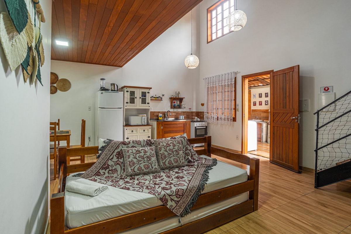 ಪೂರ್ಣ ಪ್ರಕೃತಿ ಸಂವಾದದೊಂದಿಗೆ ಆಶ್ರಯ ಪಡೆಯಲು ಬಯಸುವ ದಂಪತಿಗಳಿಗೆ ಅನನ್ಯ ಅನುಭವ. ವಿಶ್ರಾಂತಿ ಮತ್ತು ರೀಚಾರ್ಜ್ ಮಾಡಲು ಎಲ್ಲಾ ಸೌಕರ್ಯಗಳನ್ನು ಬಿಟ್ಟುಕೊಡದೆ ನಮ್ಮ ಮನೆಯನ್ನು ಪರಿಸರ ಪರಿಕಲ್ಪನೆಯೊಂದಿಗೆ ಯೋಜಿಸಲಾಗಿದೆ. ಅರಣ್ಯದೊಳಗಿನ ಪ್ರದೇಶದ ಅದ್ಭುತ ನೋಟದೊಂದಿಗೆ ಎಚ್ಚರಗೊಳ್ಳಲು ಸಿದ್ಧರಾಗಿ ಮತ್ತು ಪಕ್ಷಿಗಳ ಶಬ್ದಗಳಿಗೆ ಅನುಗುಣವಾಗಿ ಮೌನವನ್ನು ಆನಂದಿಸಿ! ಇಲ್ಲಿ ನೀವು ಅಟ್ಲಾಂಟಿಕ್ ಅರಣ್ಯದಲ್ಲಿ ಮುಳುಗುತ್ತೀರಿ ಮತ್ತು ಅದೇ ಸಮಯದಲ್ಲಿ ಬಾಂಬಿನ್ಹಾಸ್ ಪೆನಿನ್ಸುಲಾದ ಭವ್ಯವಾದ ಕಡಲತೀರಗಳ ಪಕ್ಕದಲ್ಲಿ ನಿಲ್ಲುತ್ತೀರಿ.