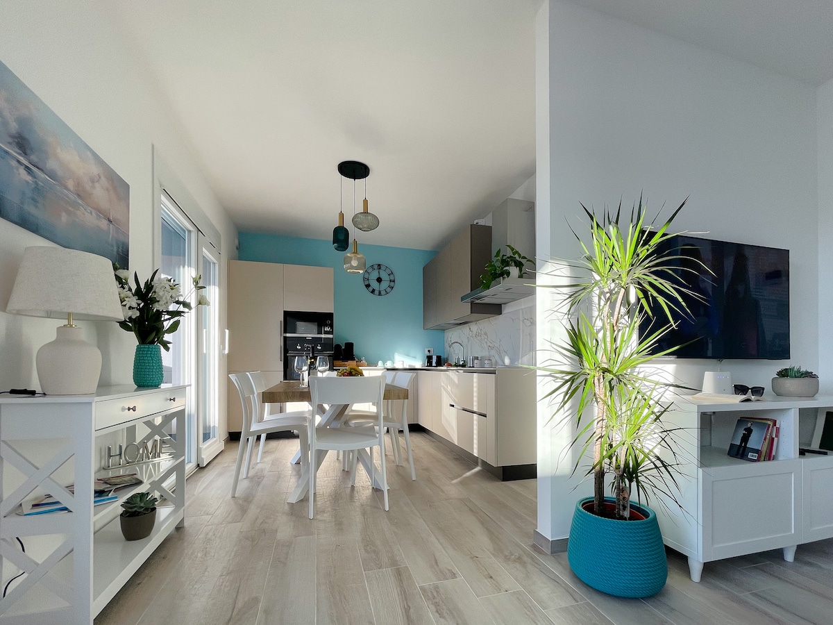 ಕಡಲತೀರಕ್ಕೆ ಹತ್ತಿರವಿರುವ ಆಧುನಿಕ ಮತ್ತು ಪ್ರಕಾಶಮಾನವಾದ ಫ್ಲಾಟ್