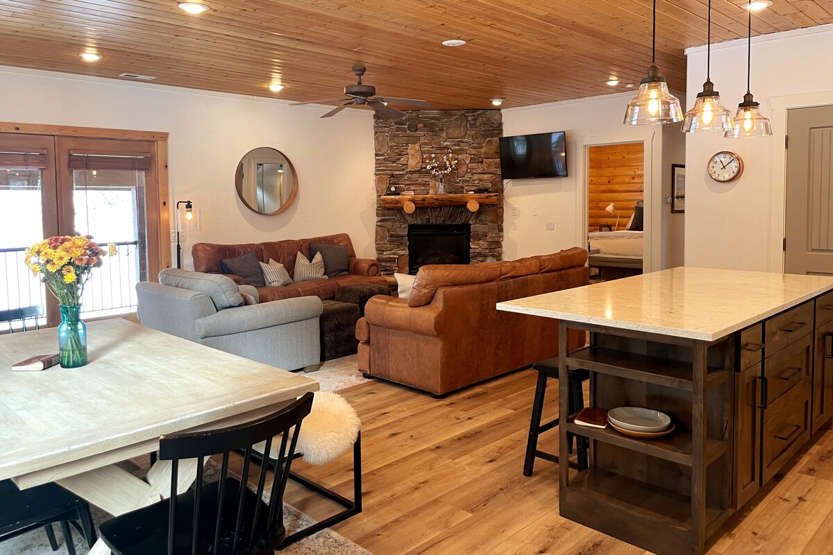 ಪೈನ್ ಮರಗಳು, ತಾಜಾ ಗಾಳಿ ಮತ್ತು ದೊಡ್ಡ ಮುಂಭಾಗದ ಬಾಲ್ಕನಿಯಿಂದ ಕೆಲವೇ ಅಡಿ ದೂರದಲ್ಲಿರುವ ಪ್ರೊವೊ ನದಿಯ ಶಬ್ದದ ವಾಸನೆಯನ್ನು ಆನಂದಿಸಿ. ನಮ್ಮ ನಿಕಟ 2 ಮಲಗುವ ಕೋಣೆ, 1 ಸ್ನಾನದ ಕ್ಯಾಬಿನ್ ದಂಪತಿಗಳ ಹಿಮ್ಮೆಟ್ಟುವಿಕೆ ಅಥವಾ ಕಾಂಡೆ ನಾಸ್ಟ್ ಪ್ರಶಸ್ತಿ ವಿಜೇತ ರೆಸಾರ್ಟ್ಗೆ ಕುಟುಂಬ ರಜಾದಿನಗಳಿಗೆ ಸಂಪೂರ್ಣವಾಗಿ ಗಾತ್ರದಲ್ಲಿದೆ. ಬೆಡ್ರೂಮ್ 1 ಕಿಂಗ್ ಸೈಜ್ ಬೆಡ್ ಮತ್ತು ಬೆಡ್ರೂಮ್ 2 ಕ್ವೀನ್ ಸೈಜ್ ಬೆಡ್ ಅನ್ನು ಒಳಗೊಂಡಿದೆ. ಲಿವಿಂಗ್ ಏರಿಯಾ ಆರಾಮದಾಯಕ ಮತ್ತು ವಿಶಾಲವಾಗಿದೆ. ಅಡುಗೆಮನೆಯು ಗುಣಮಟ್ಟದ ಉಪಕರಣಗಳು ಮತ್ತು ಗ್ರಾನೈಟ್ ಕೌಂಟರ್ಟಾಪ್ಗಳನ್ನು ಒಳಗೊಂಡಿದೆ. ಅಡುಗೆ ಸಾಮಗ್ರಿಗಳು, ಪಾತ್ರೆಗಳು ಮತ್ತು ಪಾತ್ರೆಗಳನ್ನು ಒದಗಿಸಲಾಗಿದೆ.