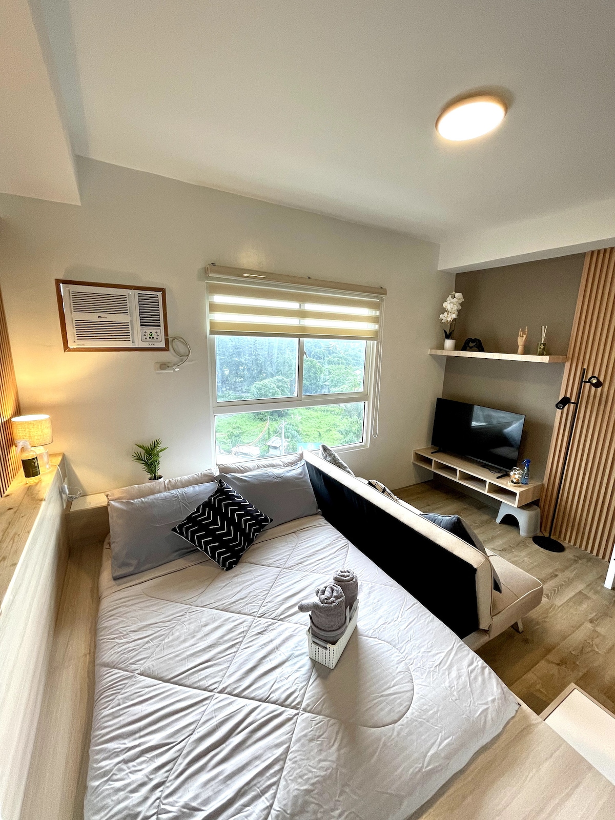 ಪ್ರಶಾಂತವಾದ ನೋಟದೊಂದಿಗೆ ವಿಶ್ರಾಂತಿ ಪಡೆಯಲು ಸುಲಭವಾದ ಶಾಂತಿಯುತ ಸ್ಥಳ. ಬೆಳಗಿನ ಸೂರ್ಯನು ಬೆಳಿಗ್ಗೆ ನಿಮ್ಮನ್ನು ಚುಂಬಿಸಲು ಸಾಧ್ಯವಾಗುತ್ತದೆ, ಅದು ದೂರದಲ್ಲಿರುವ ಪರ್ವತಗಳನ್ನು ಎದ್ದುಕಾಣುವಂತೆ ಮಾಡುತ್ತದೆ. ಮತ್ತು ರಾತ್ರಿಯಲ್ಲಿ ನೀವು ನಿದ್ರಿಸಲು ವಿಶ್ರಾಂತಿ ಪಡೆಯಲು ನೆಟ್ಫ್ಲಿಕ್ಸ್ ಗೆಸ್ಟ್ ಖಾತೆಯನ್ನು ಬಳಸಬಹುದು. ಅಯಾಲಾ ಮಾಲ್ ಹತ್ತಿರ, ಲಗುನಾ ಪಾರ್ಕ್ , 7/11 , ಮೆಕ್ಡೊ, ಜಾಲಿಬೀ ಮತ್ತು ಮಸಾಜ್ ಪಾರ್ಲರ್.
