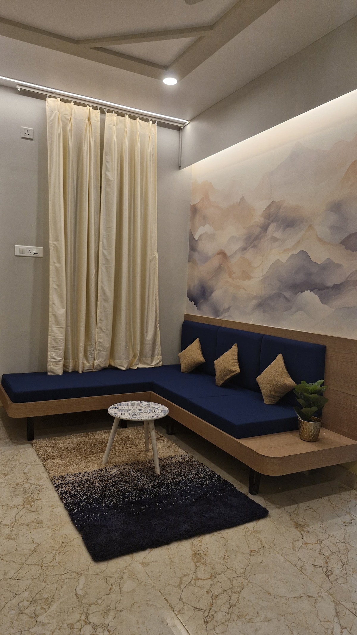 Experience peace, luxury and family-friendly comfort at our centrally located apartment near Puri Odisha Beach.The vibrant colours of the apartment is more beautiful than any hotel room in Puri. Experience a serene atmosphere, modern amenities, and easy access to local attractions. Perfect for a relaxing getaway, just steps from the beach and vibrant city life. This is a brand new apartment and is located near the beach area. Golden beach is at 800 m. Shree Jagannath temple is 2kms away.