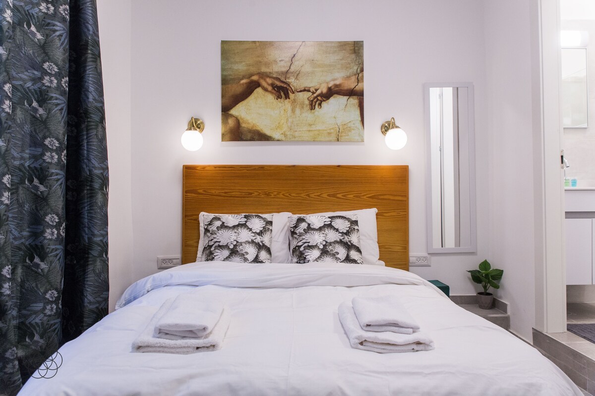 ವಿಶಾಲವಾದ ಮತ್ತು ಆರಾಮದಾಯಕ ಸ್ಟುಡಿಯೋ | ಕಡಲತೀರಕ್ಕೆ 5 ನಿಮಿಷಗಳ ನಡಿಗೆ