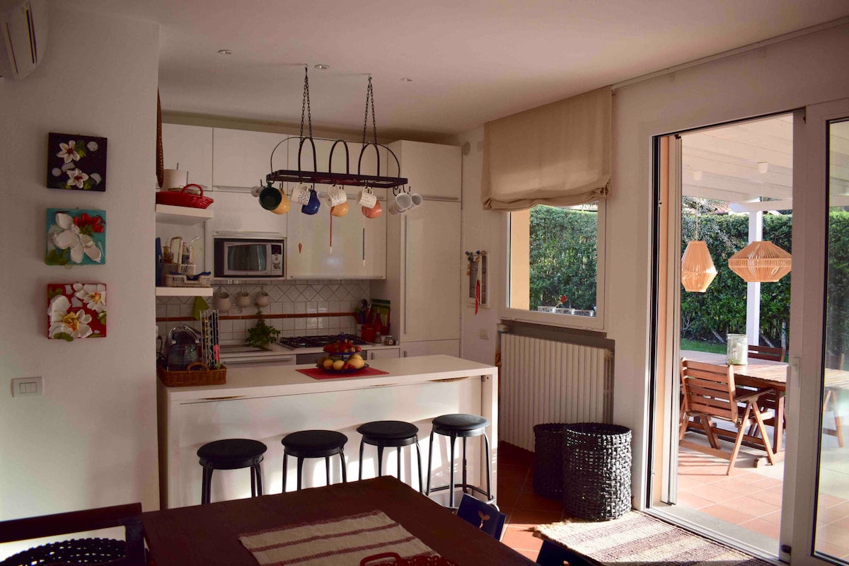 ಮಾರೆಮ್ಮ ಗ್ರಾಮಾಂತರದಲ್ಲಿ, 360° ಯೊಂದಿಗೆ ಖಾಸಗಿ ವಿಹಂಗಮ ಈಜುಕೊಳ!!! ಅರ್ಜೆಂಟಾರಿಯೊ, ಗಿಗ್ಲಿಯೊ ದ್ವೀಪ ಮತ್ತು ಮಧ್ಯಕಾಲೀನ ಗ್ರಾಮದ ನೋಟ. ಮೆಚ್ಚಿಸಲು ಅದ್ಭುತ ಸೂರ್ಯಾಸ್ತಗಳು! ವಿಲ್ಲಾ ಒಂದು ಮಹಡಿಯಲ್ಲಿದೆ, ಇದು ಒಡ್ಡಿದ ಮರದ ಕಿರಣಗಳು, ವರಾಂಡಾಗಳು, ಕೈಯಿಂದ ಮಾಡಿದ ಟೆರಾಕೋಟಾ ಮಹಡಿಗಳು, ಸೊಗಸಾದ ಕನಿಷ್ಠ ಪೀಠೋಪಕರಣಗಳಿಂದ ನಿರೂಪಿಸಲ್ಪಟ್ಟಿದೆ. ಇದು 6 ಜನರಿಗೆ ಅವಕಾಶ ಕಲ್ಪಿಸಬಹುದು. ಆಲಿವ್ ತೋಪು ಮತ್ತು ಶತಮಾನಗಳಷ್ಟು ಹಳೆಯದಾದ ಓಕ್ಗಳನ್ನು ಹೊಂದಿರುವ 2 ಹೆಕ್ಟೇರ್ ಉದ್ಯಾನವನ. ಸುಂದರವಾದ ಪೆರೆಟಾ ಗ್ರಾಮದಿಂದ 5 ನಿಮಿಷಗಳ ದೂರದಲ್ಲಿದೆ.