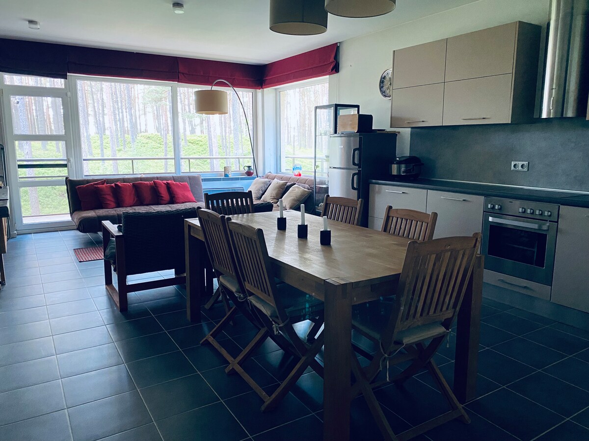 ಅರಣ್ಯದ ಅಂಚಿನಲ್ಲಿರುವ ಸ್ತಬ್ಧ ಸ್ಥಳದಲ್ಲಿ ಬಾಲ್ಟಿಕ್ ಸಮುದ್ರದ ಕರಾವಳಿಯಲ್ಲಿರುವ ಸ್ಟೈಲಿಶ್ ಅಪಾರ್ಟ್ಮೆಂಟ್ಗಳು. ಪ್ರದೇಶವು ಬೇಲಿ ಹಾಕಲಾಗಿದೆ, ಉಚಿತ ಪಾರ್ಕಿಂಗ್, ಆಟದ ಮೈದಾನವಾಗಿದೆ. ಅಪಾರ್ಟ್ಮೆಂಟ್ನಲ್ಲಿ: 1 ದೊಡ್ಡ ಹಾಸಿಗೆ, 1 ಸಿಂಗಲ್ ಬೆಡ್, ವಿಶ್ರಾಂತಿಗಾಗಿ ಸೋಫಾ, ಊಟದ ಪ್ರದೇಶ, ಅಡುಗೆಮನೆ, ಕೆಲಸದ ಪ್ರದೇಶ. ವಾಕಿಂಗ್ ದೂರದಲ್ಲಿ: ಸಮುದ್ರಕ್ಕೆ 10 ನಿಮಿಷಗಳು, ಮ್ಯಾಕ್ಸಿಮ್ಗೆ 5 ನಿಮಿಷಗಳು, ಬಸ್ ನಿಲ್ದಾಣಕ್ಕೆ 15 ನಿಮಿಷಗಳು. ನಗರವು 2 ರೆಸ್ಟೋರೆಂಟ್ಗಳು, ಕ್ಯಾಂಟೀನ್, ಔಷಧಾಲಯಗಳನ್ನು ಹೊಂದಿದೆ. ನೀವು ಮೌನವನ್ನು ಆನಂದಿಸಲು ಮತ್ತು ನಗರದಿಂದ ದೂರವಿರಲು ಬಯಸಿದರೆ, ಇದು ನಿಮಗಾಗಿ ಸ್ಥಳವಾಗಿದೆ! ಸುಸ್ವಾಗತ!