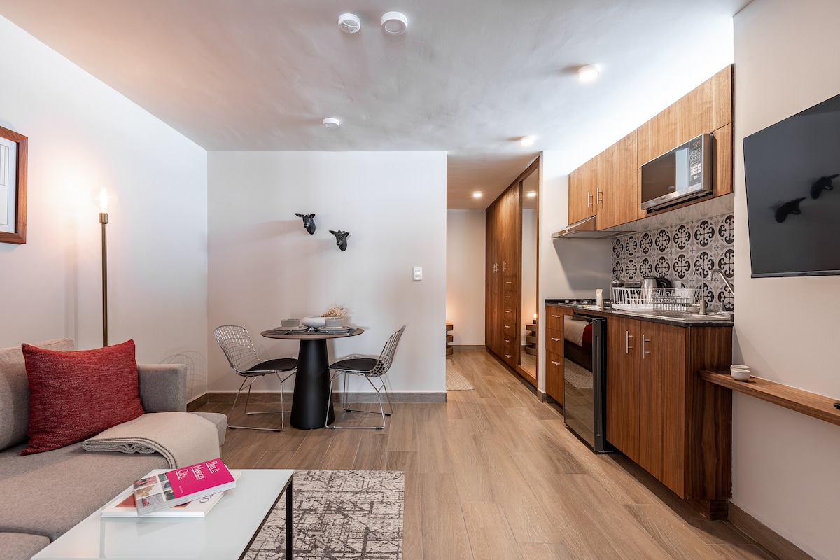 ಮೆಕ್ಸಿಕೋ ನಗರದ ಅತ್ಯಂತ ಅಪೇಕ್ಷಿತ ನೆರೆಹೊರೆಗಳಲ್ಲಿ ಒಂದಾದ ಕೊಲೊನಿಯಾ ರೋಮಾದ ರೋಮಾದ ರೋಮಾಂಚನವನ್ನು ಅನುಭವಿಸಲು ಸೂಕ್ತವಾಗಿದೆ - ರೆಸ್ಟೋರೆಂಟ್ಗಳು, ಬಾರ್ಗಳು, ಬೊಟಿಕ್ಗಳು, ಶಾಪಿಂಗ್ ಮತ್ತು ಸಾಂಸ್ಕೃತಿಕ ಹೆಗ್ಗುರುತುಗಳು ಸೇರಿದಂತೆ ತಂಪಾದ ಸ್ಥಳೀಯ ಹಾಟ್ಸ್ಪಾಟ್ಗಳಿಂದ ದೂರವಿದೆ. ಈ ಸೊಗಸಾದ ಒಂದು ಬೆಡ್ರೂಮ್ ಅಪಾರ್ಟ್ಮೆಂಟ್ ಎತ್ತರದ ಛಾವಣಿಗಳು, ಸಾಕಷ್ಟು ನೈಸರ್ಗಿಕ ಬೆಳಕು ಮತ್ತು ಆಧುನಿಕ ಪೀಠೋಪಕರಣಗಳೊಂದಿಗೆ ಐಷಾರಾಮಿ ಮತ್ತು ಆರಾಮವನ್ನು ನೀಡುತ್ತದೆ. ಇದು ತೆರೆದ ಲಿವಿಂಗ್ ಏರಿಯಾ, ಪ್ರೈವೇಟ್ ಟೆರೇಸ್ ಮತ್ತು ಕಿಂಗ್-ಗಾತ್ರದ ಹಾಸಿಗೆ ಮತ್ತು ಕಾರ್ಯಕ್ಷೇತ್ರವನ್ನು ಹೊಂದಿರುವ ಶಾಂತಿಯುತ ಮಲಗುವ ಕೋಣೆಯನ್ನು ಒಳಗೊಂಡಿದೆ.