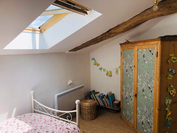 - ಎರಡು 90 ಸೆಂಟಿಮೀಟರ್ ಹಾಸಿಗೆಗಳನ್ನು ಹೊಂದಿರುವ ರೂಫ್ಟಾಪ್ಗಳಲ್ಲಿ ಒಂದರ ಕೆಳಗೆ ಇರುವ ಮುದ್ದಾದ ಮತ್ತು ಆರಾಮದಾಯಕವಾದ ಎರಡನೇ ಬೆಡ್ರೂಮ್.