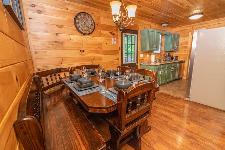 "ಬಿಯರ್ಮನ್ಸ್ ಕ್ಯಾಬಿನ್" ಗೆ ಸುಸ್ವಾಗತ, ಅಲ್ಲಿ ನೆಮ್ಮದಿ ಸಾಹಸವನ್ನು ಪೂರೈಸುತ್ತದೆ ಮತ್ತು ಪ್ರತಿ ಕ್ಷಣವು ಪ್ರಕೃತಿ ಮತ್ತು ಪ್ರೀತಿಪಾತ್ರರೊಂದಿಗೆ ಮರುಸಂಪರ್ಕಿಸಲು ಒಂದು ಅವಕಾಶವಾಗಿದೆ. ನೀವು ಶಾಂತಿಯುತ ರಿಟ್ರೀಟ್ ಅಥವಾ ಆಕ್ಷನ್-ಪ್ಯಾಕ್ ಮಾಡಿದ ವಿಹಾರವನ್ನು ಬಯಸುತ್ತಿರಲಿ, ನಮ್ಮ ಮೋಡಿಮಾಡುವ 3BD ಕ್ಯಾಬಿನ್ (ಮಲಗುವ 8) ನಿಮಗೆ ಮತ್ತು ನಿಮ್ಮ ಕುಟುಂಬಕ್ಕೆ ಪರಿಪೂರ್ಣ ಅಭಯಾರಣ್ಯವನ್ನು ನೀಡುತ್ತದೆ. ಸೆರೆನ್ ವುಡ್ ವ್ಯೂಸ್ ★ಫೈರ್ ಪಿಟ್ ★BBQ ಗ್ರಿಲ್ ★ಕಾರ್ನ್ ಹೋಲ್ ★ಆರ್ಕೇಡ್ ಮತ್ತು ಹೆಚ್ಚಿನದನ್ನು ಹೊಂದಿರುವ★ ಖಾಸಗಿ ಹಾಟ್ ಟಬ್ ★ಡೆಕ್ಗಳು!