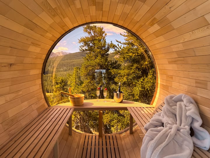 ಬೆಚ್ಚಗಿನ ಕಾಫಿ ಕಪ್ ಮತ್ತು ಸೂರ್ಯನ ಕಿರಣಗಳು ಮುಟ್ಟಿದ ಶಿಖರಗಳೊಂದಿಗೆ ಡೆಕ್ನಲ್ಲಿ ಬೆಳಗಿನ ಸಮಯ. ಸಾವಿರಾರು ನಕ್ಷತ್ರಗಳ ಅಡಿಯಲ್ಲಿ ಹಾಟ್ ಟಬ್ನಲ್ಲಿ ರಾತ್ರಿಗಳು ಅಥವಾ ಬೆಂಕಿಯ ಮೇಜಿನ ಬಳಿ ಸ್ಮೋರ್ಗಳನ್ನು ಹುರಿಯುವುದು. ಮತ್ತು ನಮ್ಮ ನೆಚ್ಚಿನದು - ಗೋಲ್ಡನ್ ಗ್ಲೋ ಮತ್ತು ಮಿಲಿಯನ್ ಡಾಲರ್ ವ್ಯೂ ಹೊಂದಿರುವ ಪನೋರಮಿಕ್ ಬ್ಯಾರೆಲ್ ಸೌನಾ.