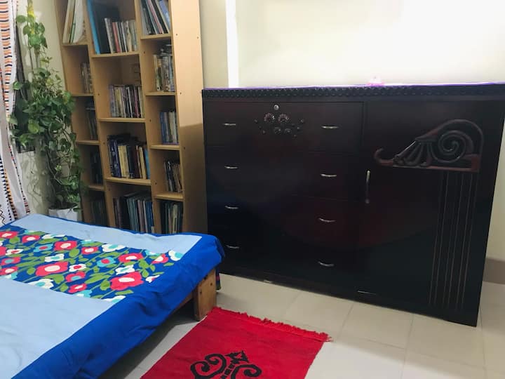 ಮನೆಯಲ್ಲಿ ನಿಮ್ಮ ಸ್ವಂತ ರೂಮ್, ಜೊತೆಗೆ ಹಂಚಿದ ಸ್ಥಳಗಳಿಗೆ ಪ್ರವೇಶ.